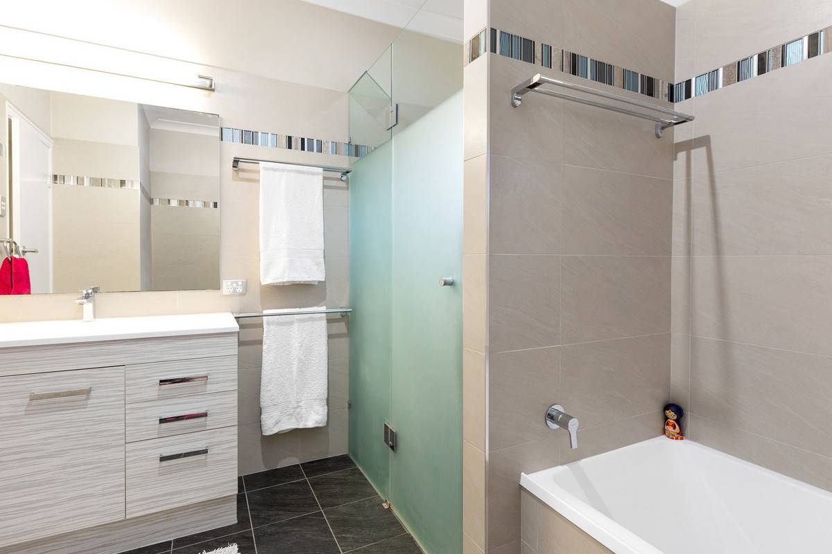 Featuring three well-sized bedrooms with built-in robes, each includes air-conditioning, window shutters and access to the renovated bathroom.