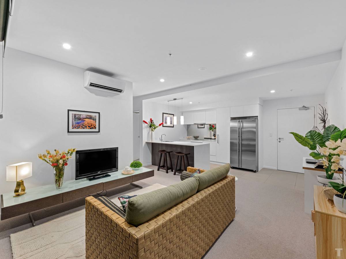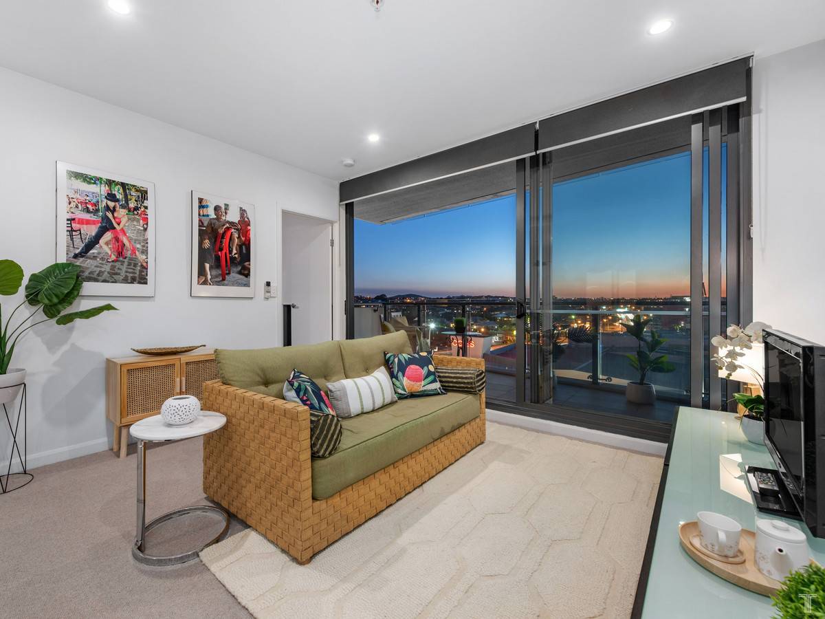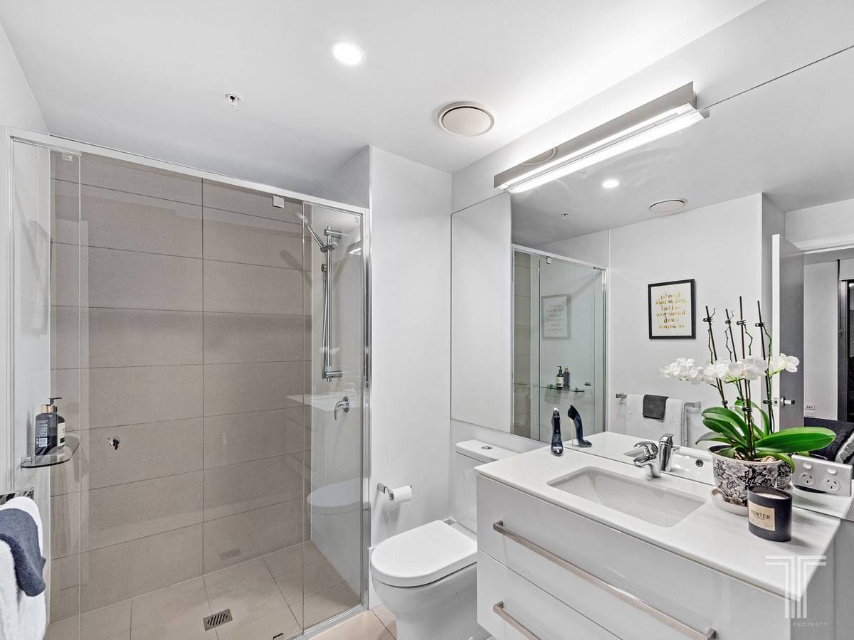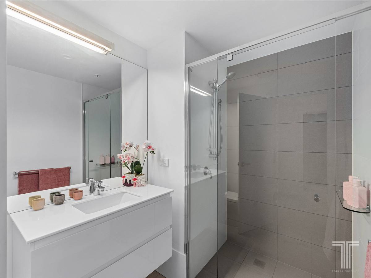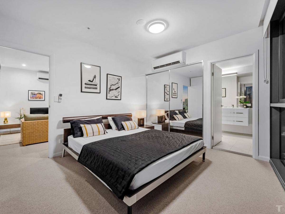 The light-filled 2-bedroom, 2-bathroom apartment captures the best of inner-city living. It features floor-to-ceiling glass panelling in the main bedroom and ensuite, city views and beautiful breezes off the balcony through the open living space, and thoughtful separation of the second bedroom and bathroom for privacy.