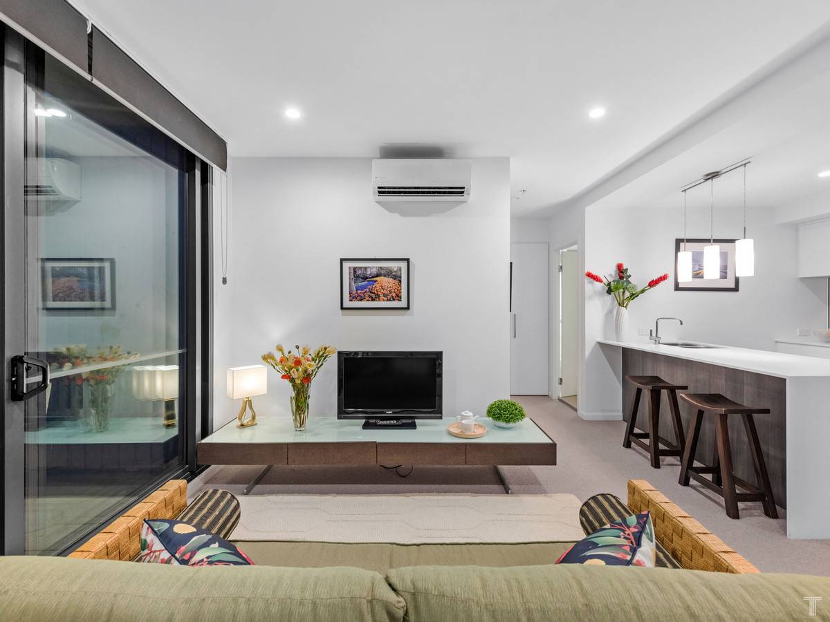 The near-new complex showcases the best in modern design and styling at every turn. A momentary lift ride to the ground floor delivers you to the open-air arcade bustling with restaurants, cafes, bars, grocery stores, beauty salon, Dendy cinema and more.