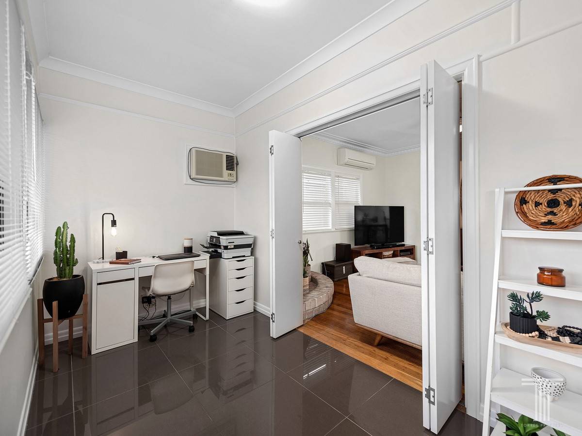 The layout offers three bedrooms, all with built-in robes for added storage, while the main bedroom features a private ensuite with a shower. The family bathroom has been renovated with a bath, an oversized shower and on-trend tiles while a tiled entrance foyer is also used as an office to ensure added flexibility.