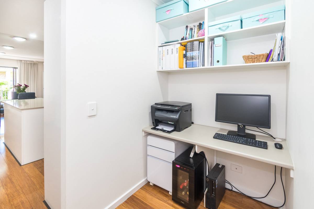 Hosting two bedrooms, the apartment includes a master suite with a walk-in robe and stylish ensuite. The second bedroom features a built-in robe and access to the main bathroom. Completing this residence is a study nook, European laundry and a single car space.