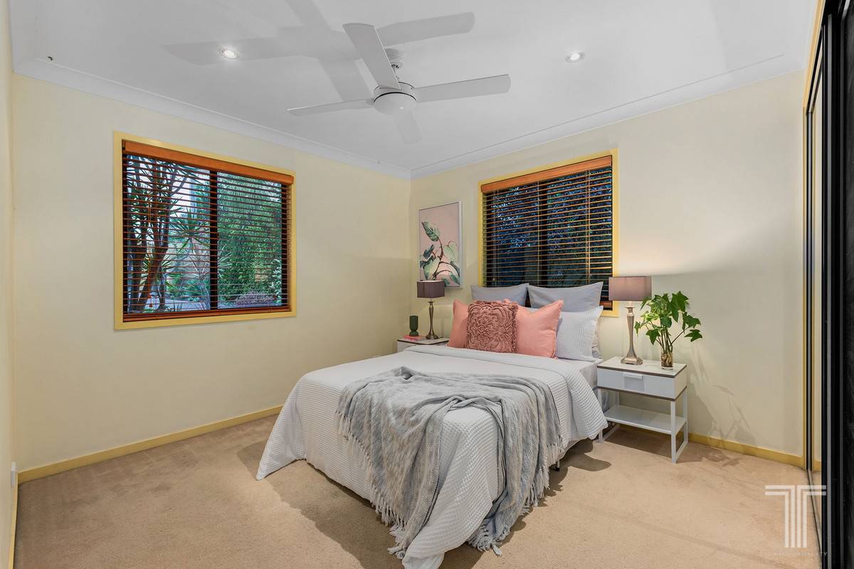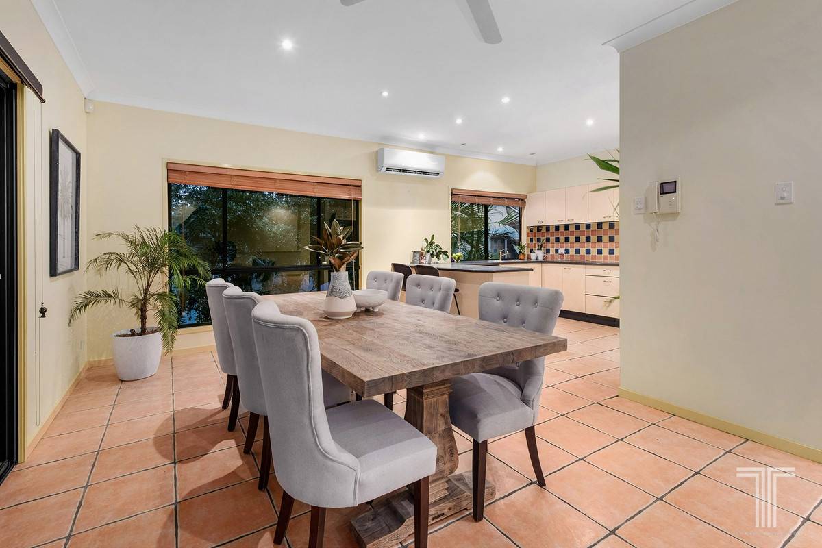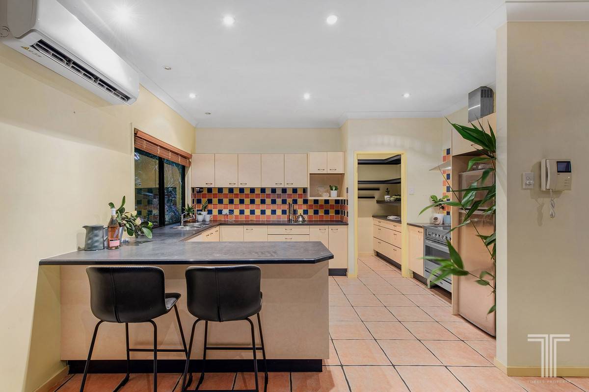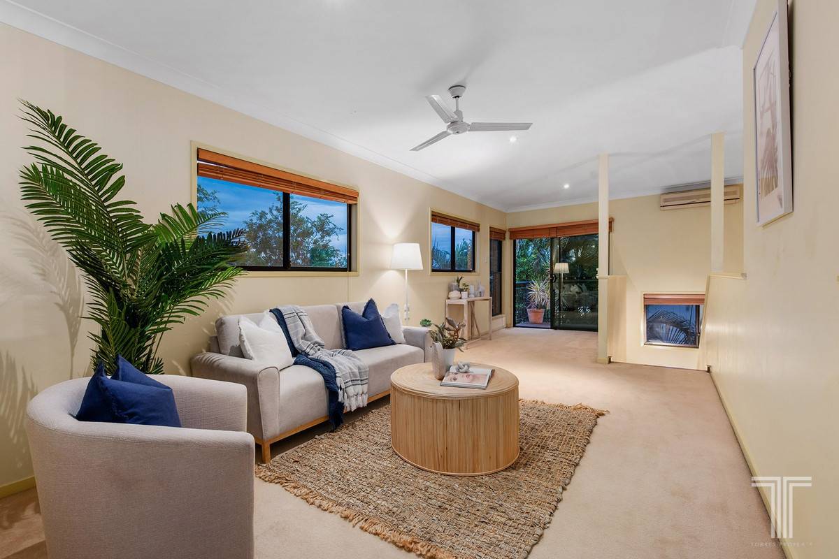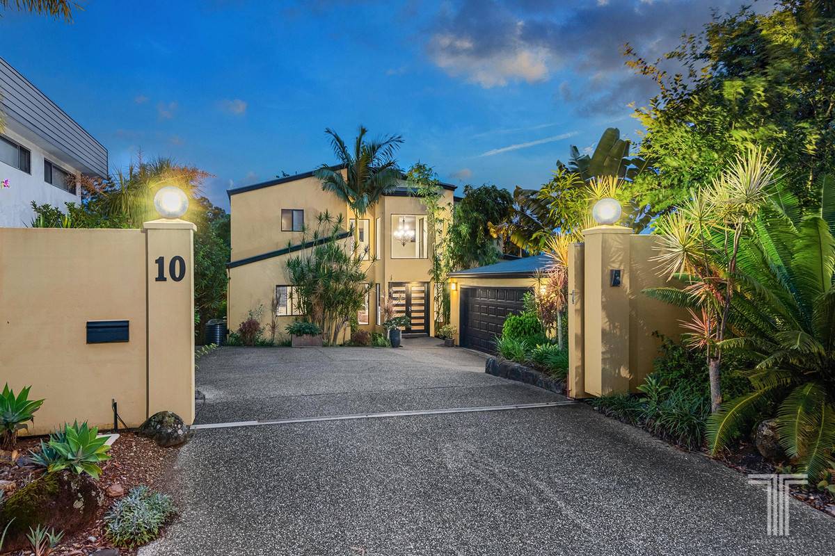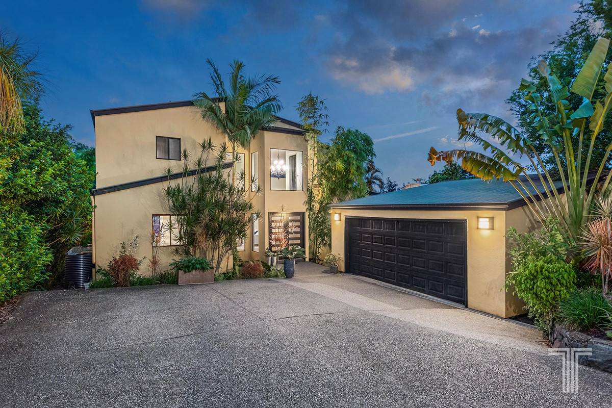 Completing the entry-level are four bedrooms with built-in robes, a bathroom with dual vanities and a separate powder room. Perched on the upper floor is an exclusive parent's retreat unveiling a private living area with city glimpses, balcony overlooking Mt Cootha views, bedroom, walk-in robe and an ensuite.