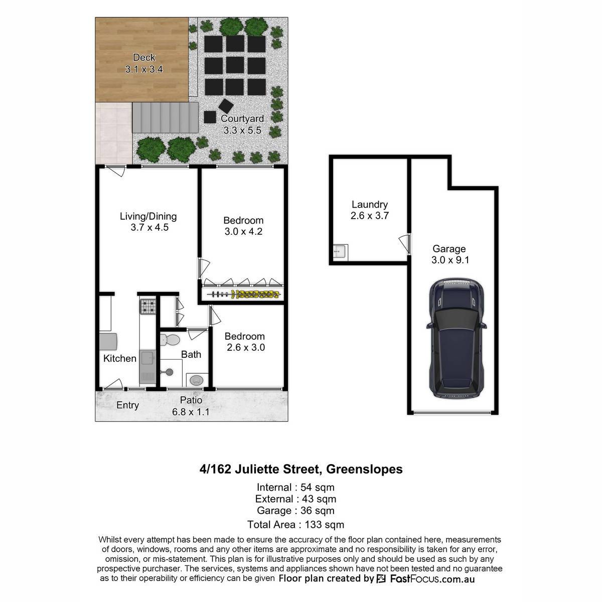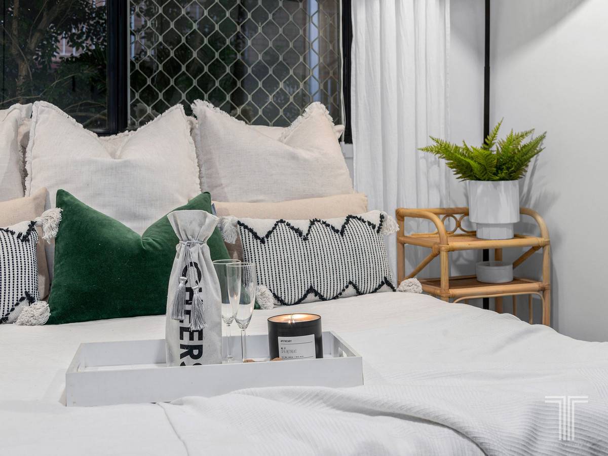 Stepping outside, the enchanting garden courtyard and timber deck offer a peaceful outdoor retreat. Surrounded by manicured greenery and featuring room for a firepit, you are sure to enjoy alfresco drinks and meals with friends here.