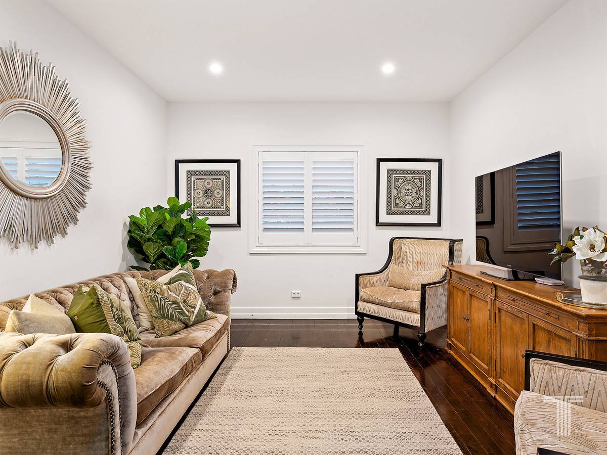 Impeccably appointed with contrasting crisp white and dark interiors complemented by organic timber floors and stylish shutters, the home exudes warmth and elegance from the moment you step inside.