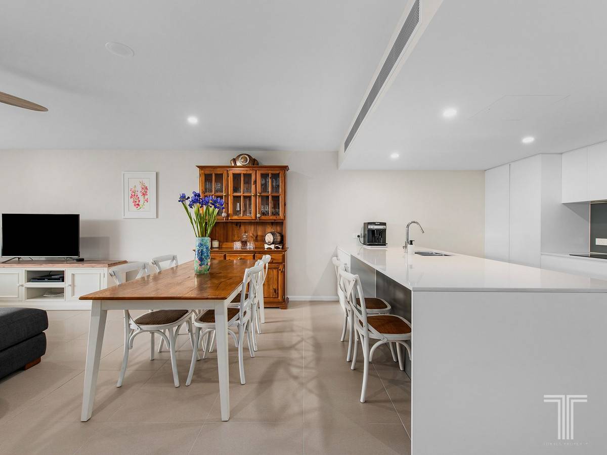 Capturing the art of space and complimented with a crisp colour pallet, the light-filled, interior, and open plan living is superbly appointed to maintain an effortless flow onto the glass framed balcony to experience the ultimate picturesque setting to enjoy alfresco dinners, drinks and entertaining.