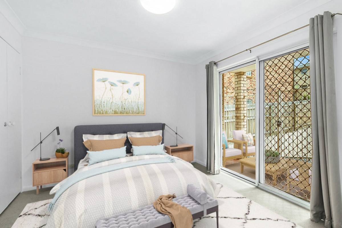 Positioned on the first floor, the apartment opens to an air-conditioned living and dining area and a functional kitchen drawing in a wealth of natural light and lush green outlooks. Stepping with ease out to your fully fenced entertainer's courtyard, this alfresco retreat opens directly onto the shared complex yard, offering further room to soak up the sunshine, relax or for kids to run and play.