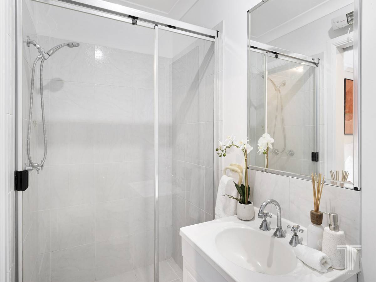 Three bedrooms and two bathrooms are positioned on the first floor, including a master featuring a walk-in robe and ensuite. Offering privacy and independent living, a fourth bedroom downstairs also includes an ensuite and access to the rear patio.