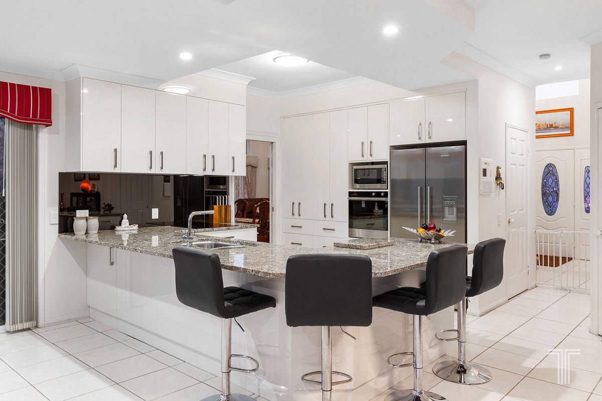 Beautifully presented, the fa?ade reveals a stone fountain and fishpond with LED lights that guide you to the foyer showcasing large windows, a chandelier and stained glass French doors. This light-filled entrance extends into a formal lounge room, which offers a peaceful indoor retreat with air-conditioning and two chandeliers.