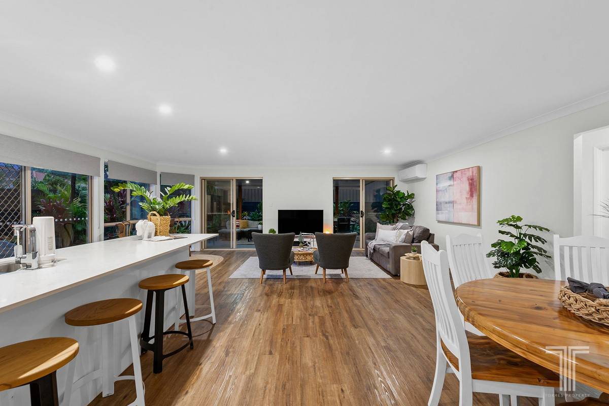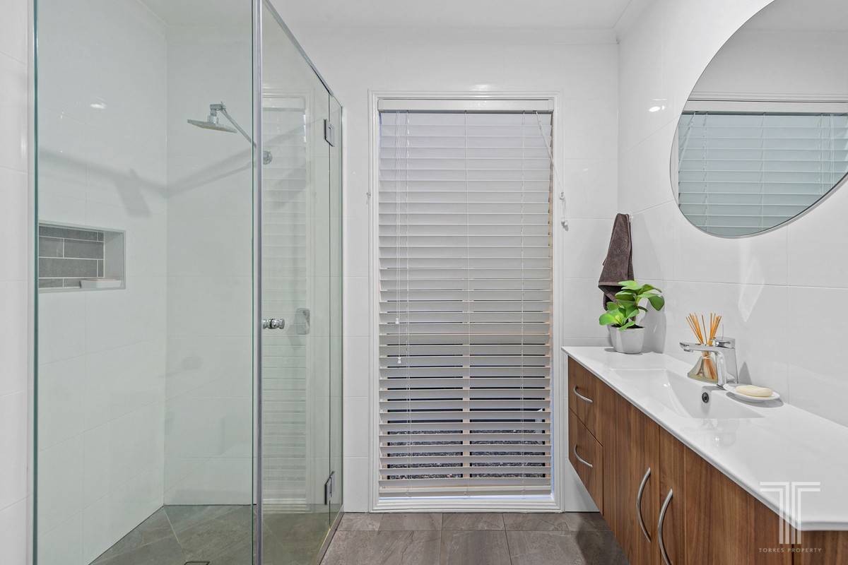 Four well-sized bedrooms are serviced by two modern bathrooms. The master includes an exclusive ensuite and a walk-in robe, while the main bathroom features a deluxe freestanding bath and a walk-in shower. Complete with a double garage, fans and air-conditioning, this home has it all.