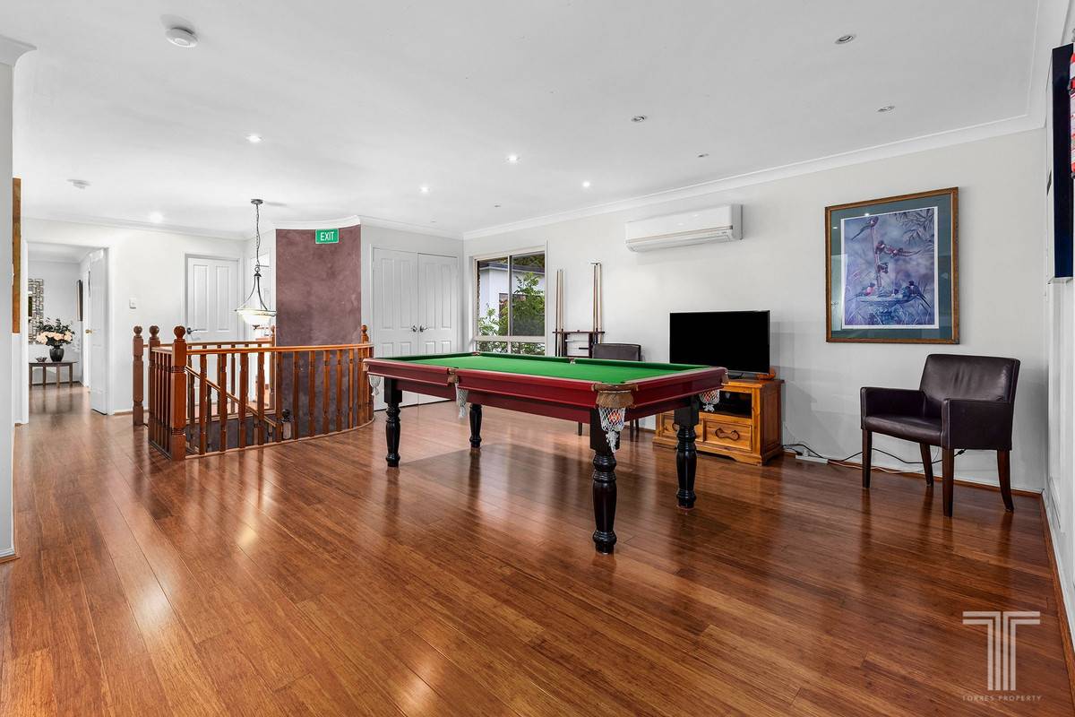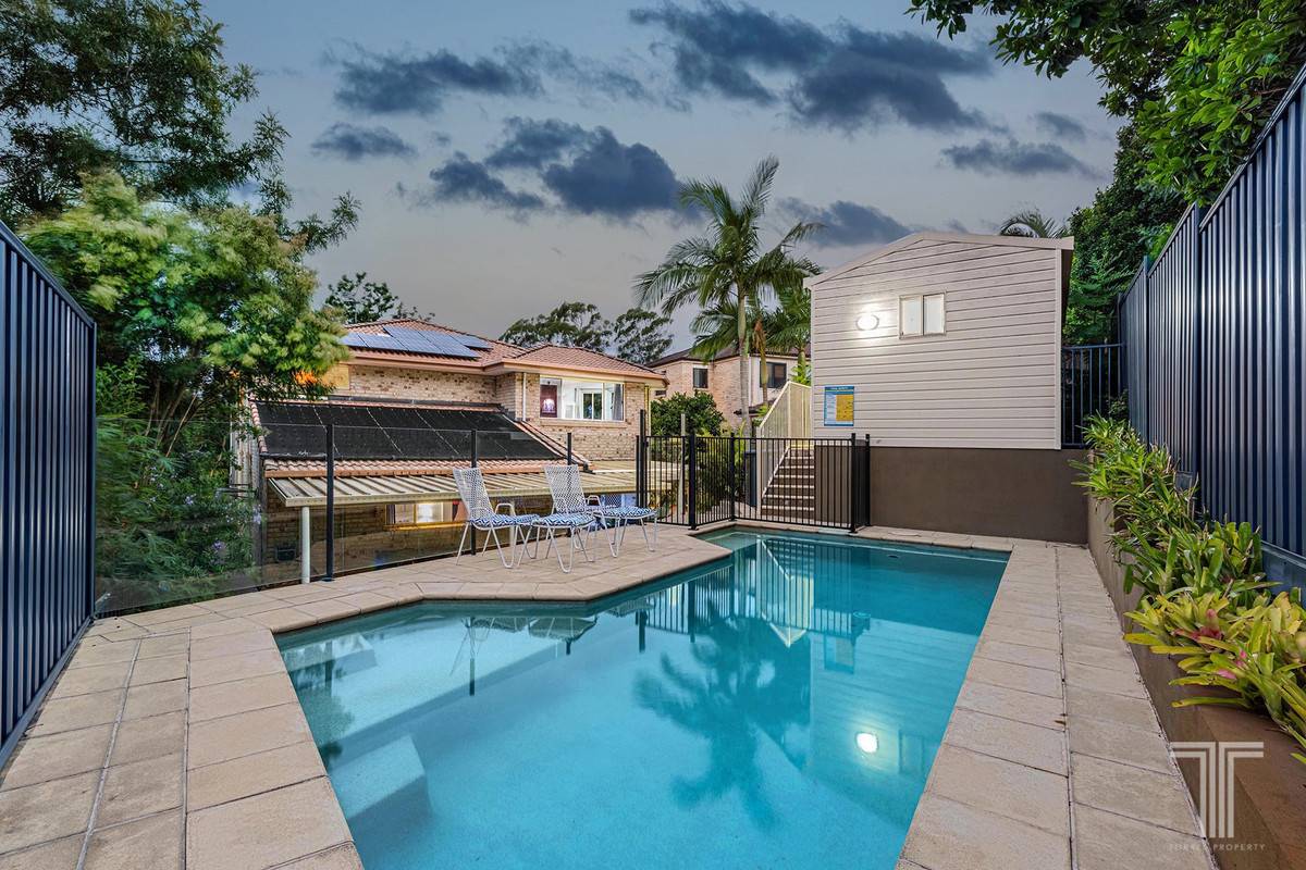 Destined for entertaining, the patio reveals a private undercover area and sunlit space, ideal for summer parties, a basketball hoop, or kids to ride their bikes and scooters. Featuring stairs up to the sparkling pool and a large multipurpose room, which was previously used as a home gym, you can enjoy a workout followed by a swim.