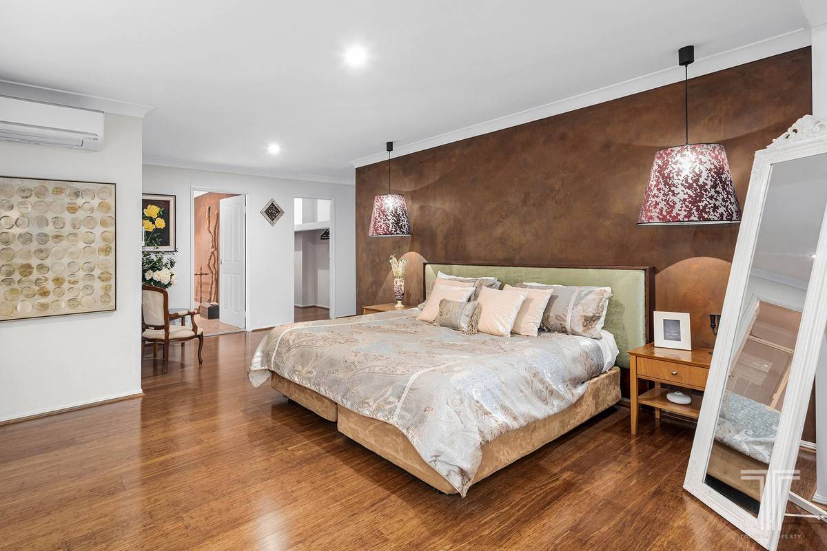 The entryway opens to a formal lounge, formal dining room, a central living area and an entertainer's kitchen with oversized benchtops. Boasting an open design and seamless indoor/outdoor connection, this relaxed family zone gazes out across the alfresco patio.