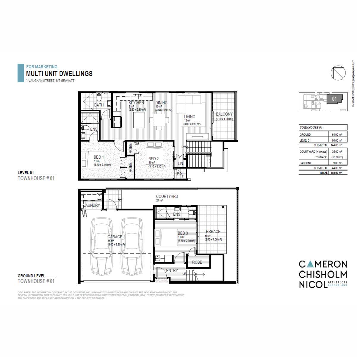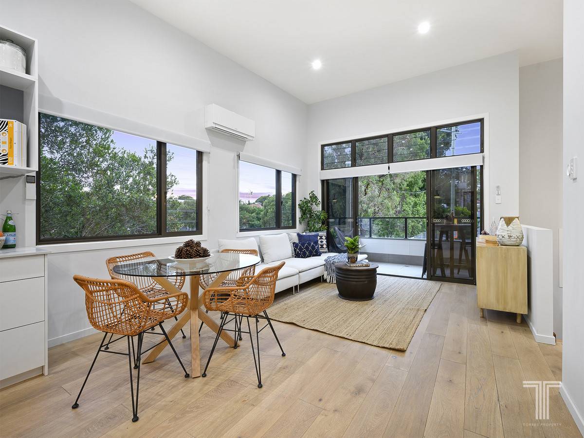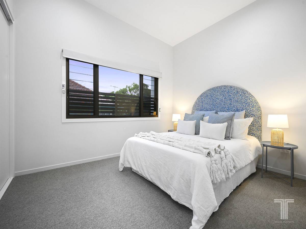 Presenting flexibility and separation, a third bedroom/studio downstairs offers private living with a kitchenette, ensuite and sliding glass doors opening to the terrace and courtyard. Complete with a double garage, laundry and air-conditioning, every detail of this townhouse has been meticulously designed.