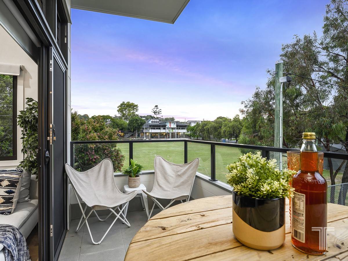 Thoughtfully composed with 12ft ceilings upstairs and engineered timber floors, the lounge and dining area is bright, open and airy. Exceptionally inviting and embracing the cooling breezes and surrounding greenery, the interiors step out with ease to the entertainer's balcony.