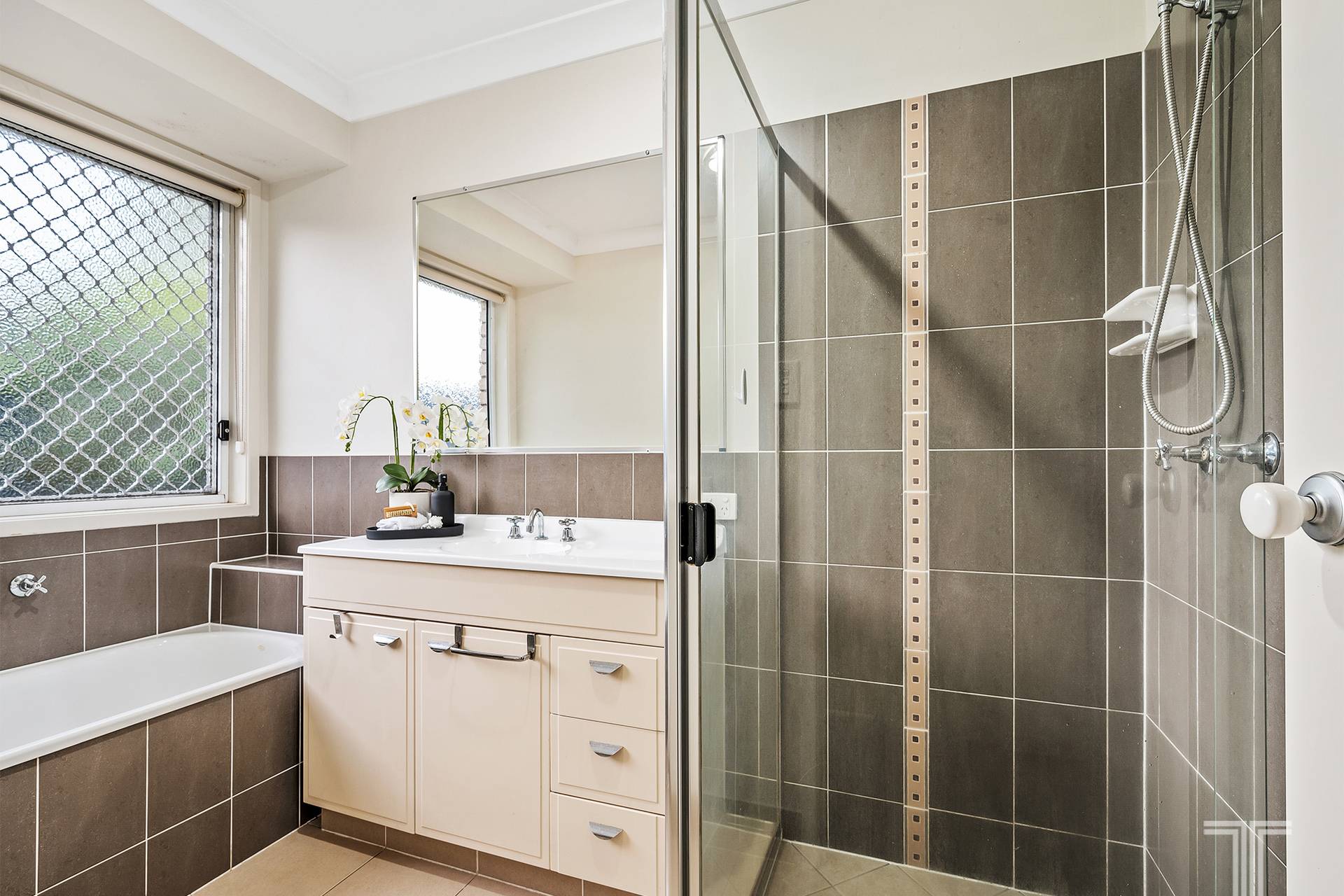 Seamlessly connecting the living and entertaining zones, the dining area extends to the air-conditioned living room, rumpus, and the undercover patio. Elevated with blissful views across the sweeping treetops, the outdoor retreat offers private entertaining space and access to the grassy backyard, which provides plenty of room for pets or a pool.