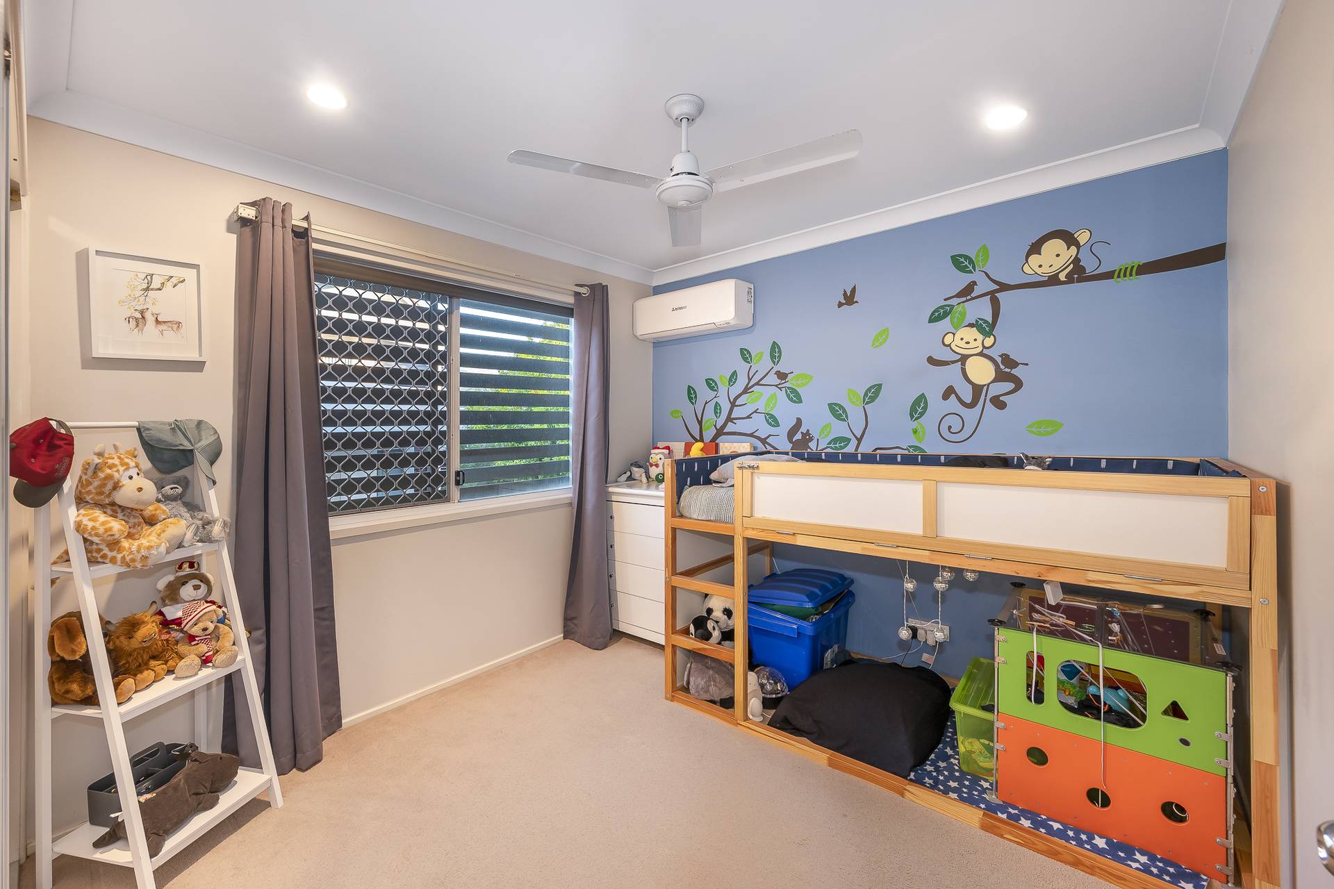 - Split system air-conditioning, ceiling fans and security screens