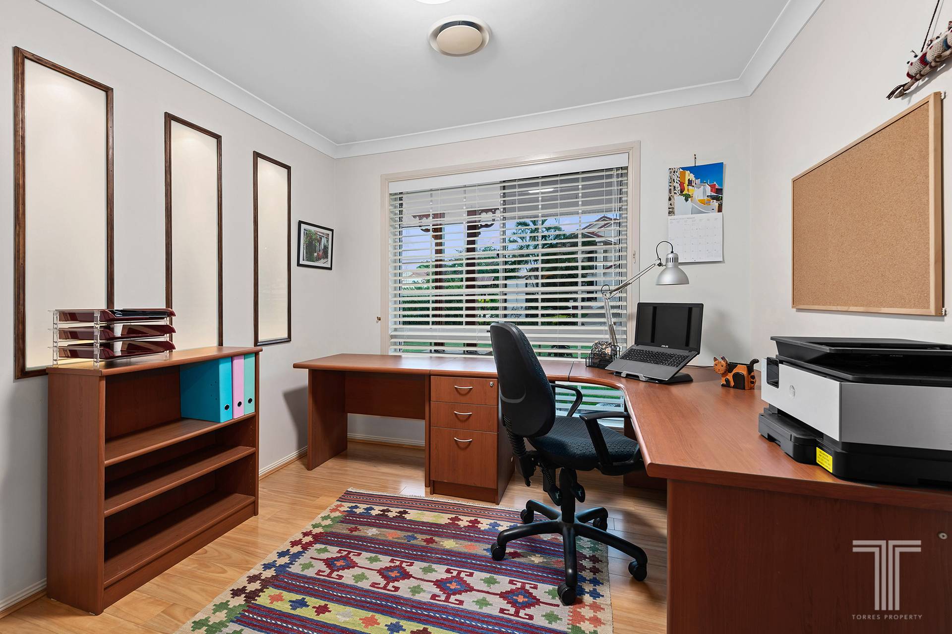 With the study and fifth bedroom located off the entranceway, these rooms are currently set up as adjacent offices, perfect for those working from home.
