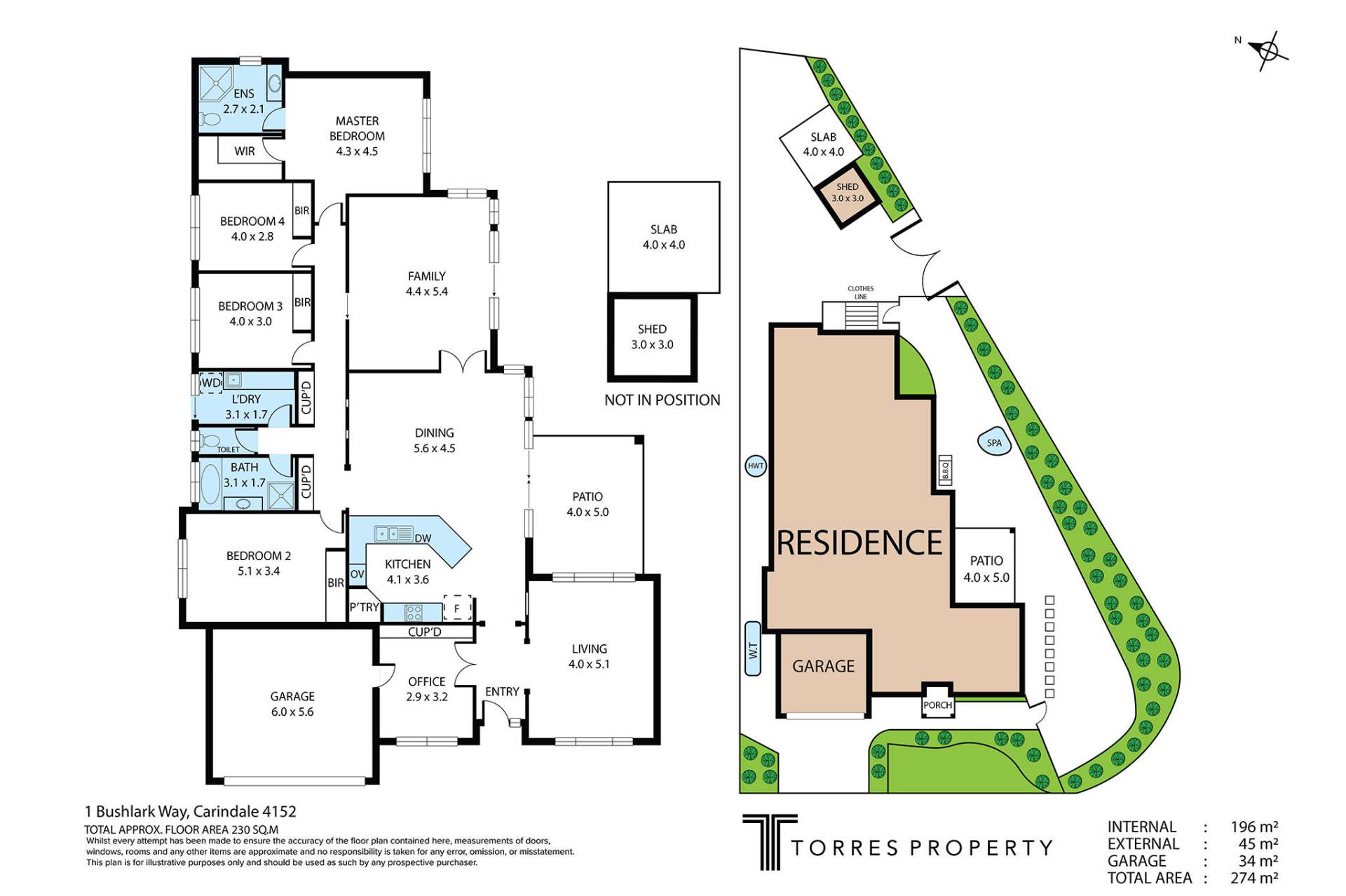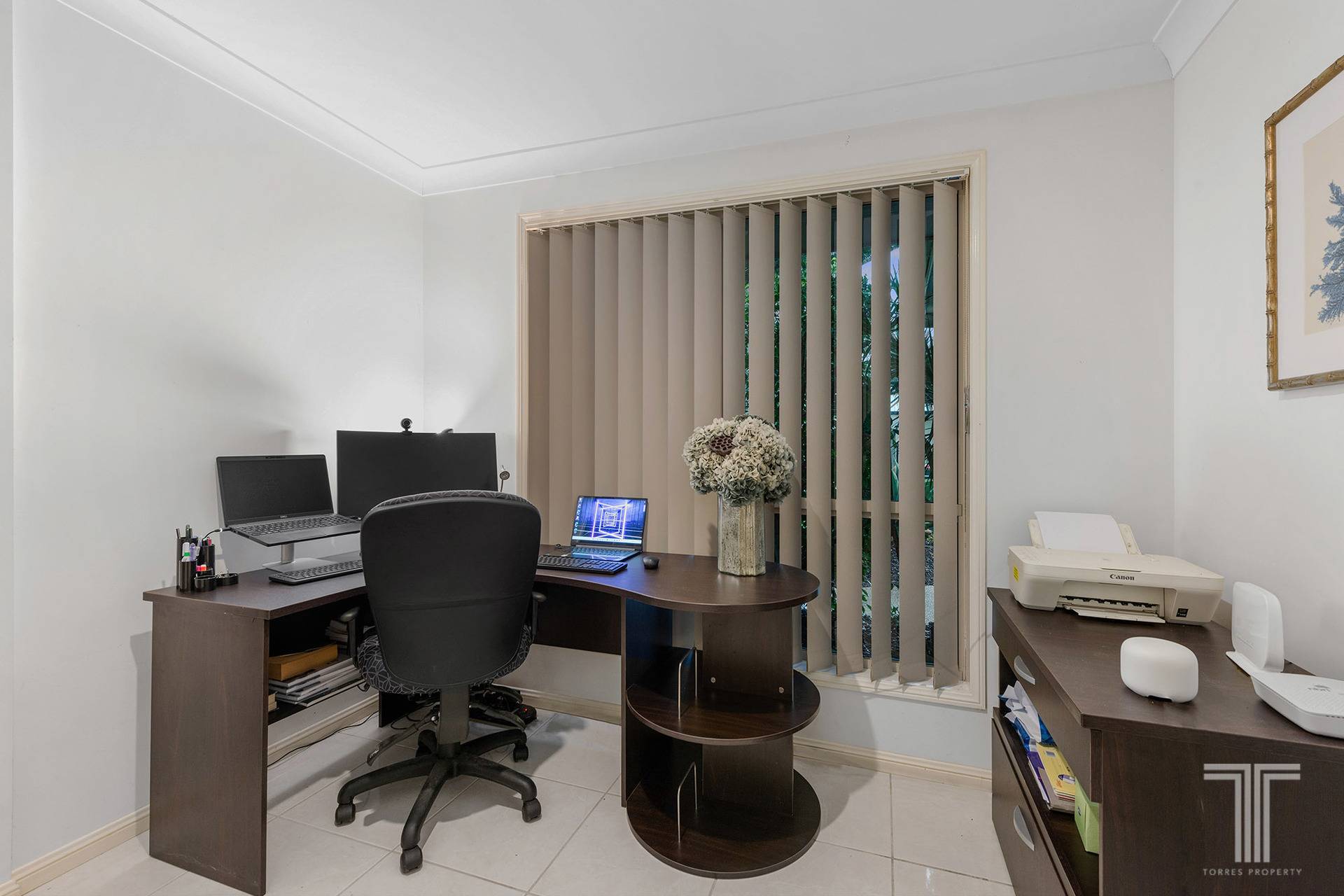 Four generous and carpeted bedrooms accompany two bathrooms and a study with access to the garage and storage. The master includes a walk-in robe and exclusive ensuite, while the additional bedrooms feature built-in robes.