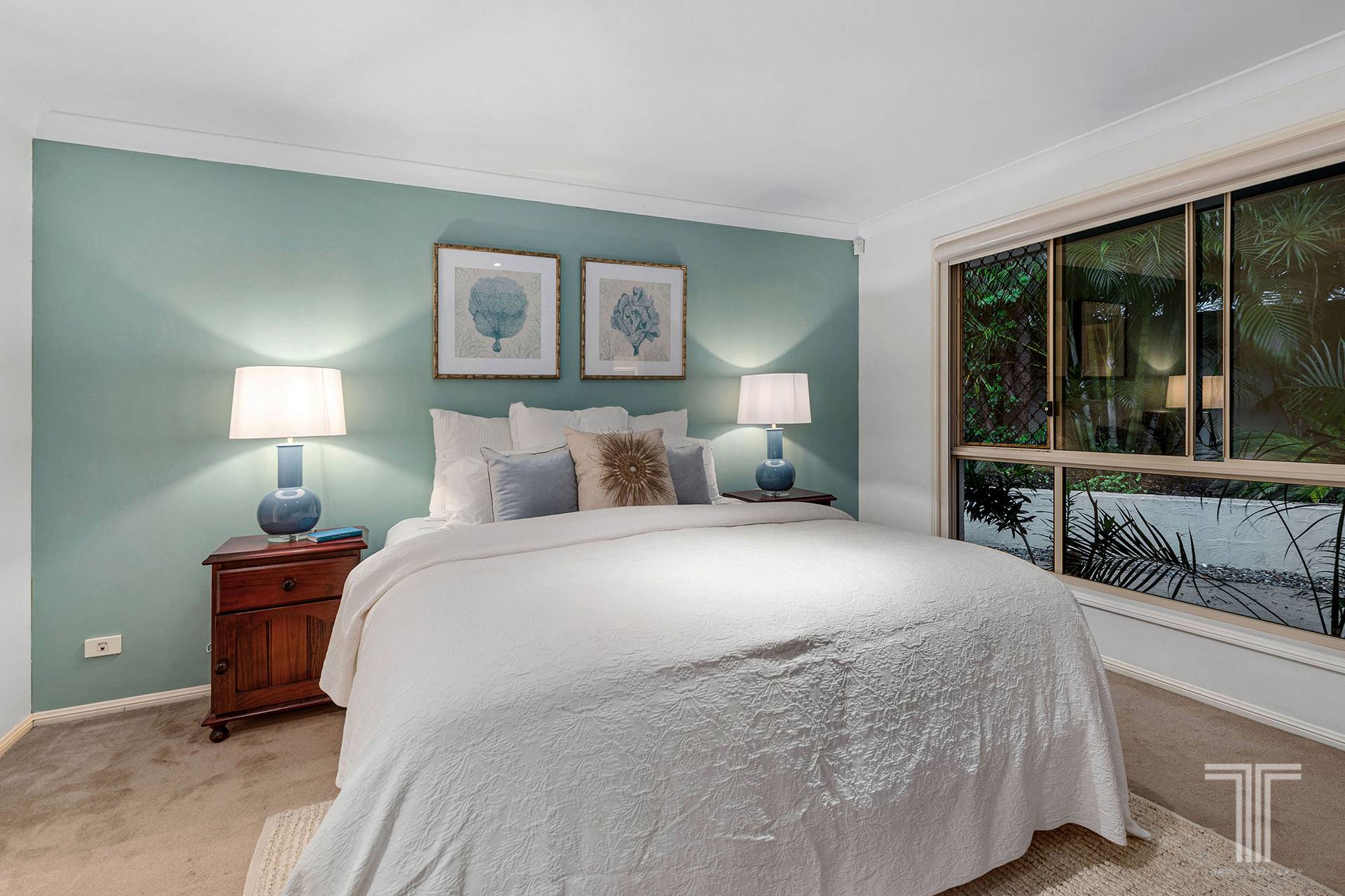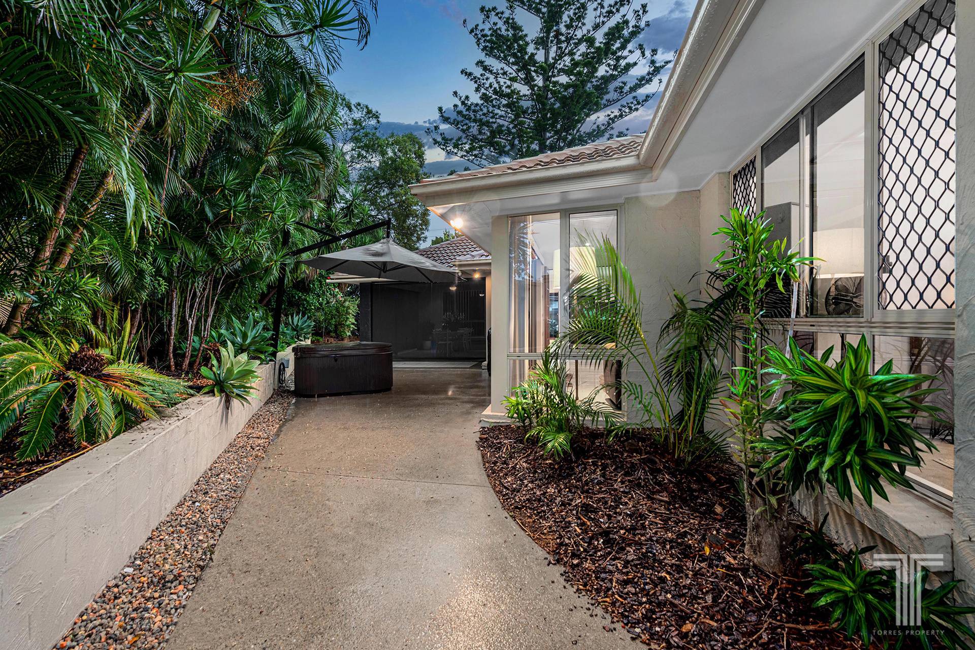 Moving out through sliding glass doors, you are presented with an alfresco patio that can be enclosed for all-weather entertaining. Leading out to a separate seating area and low maintenance grounds, this outdoor retreat boasts tropical gardens that invite a sense of serenity, privacy and calming scenery.