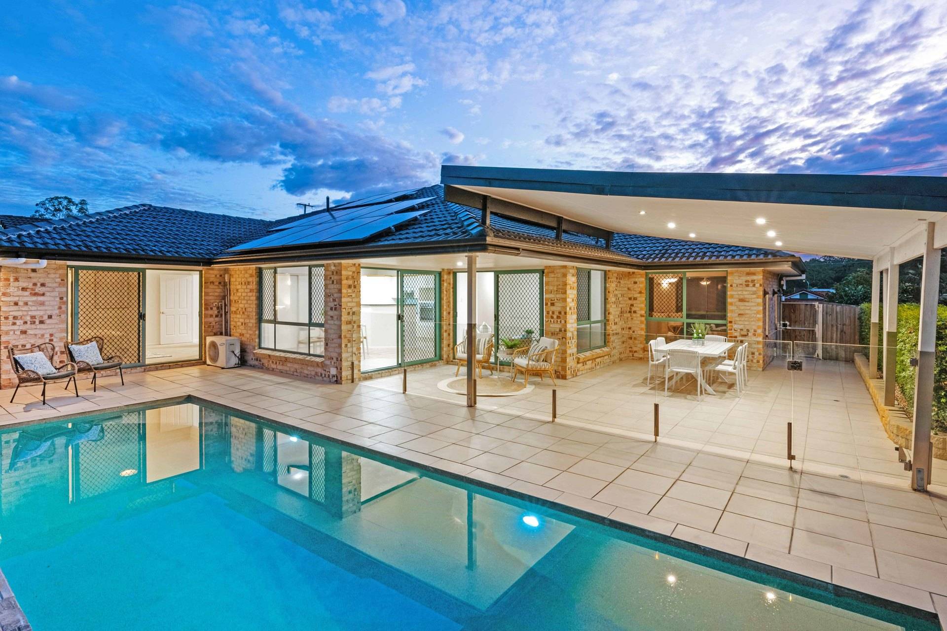The layout features four bedrooms, two bathrooms, a laundry and a double-car garage. Parents will fall in love with the master suite, which boasts an ensuite and direct access to the pool. Finalising the property is a 10kW solar system, security screens and air-conditioning in the living area and bedrooms.