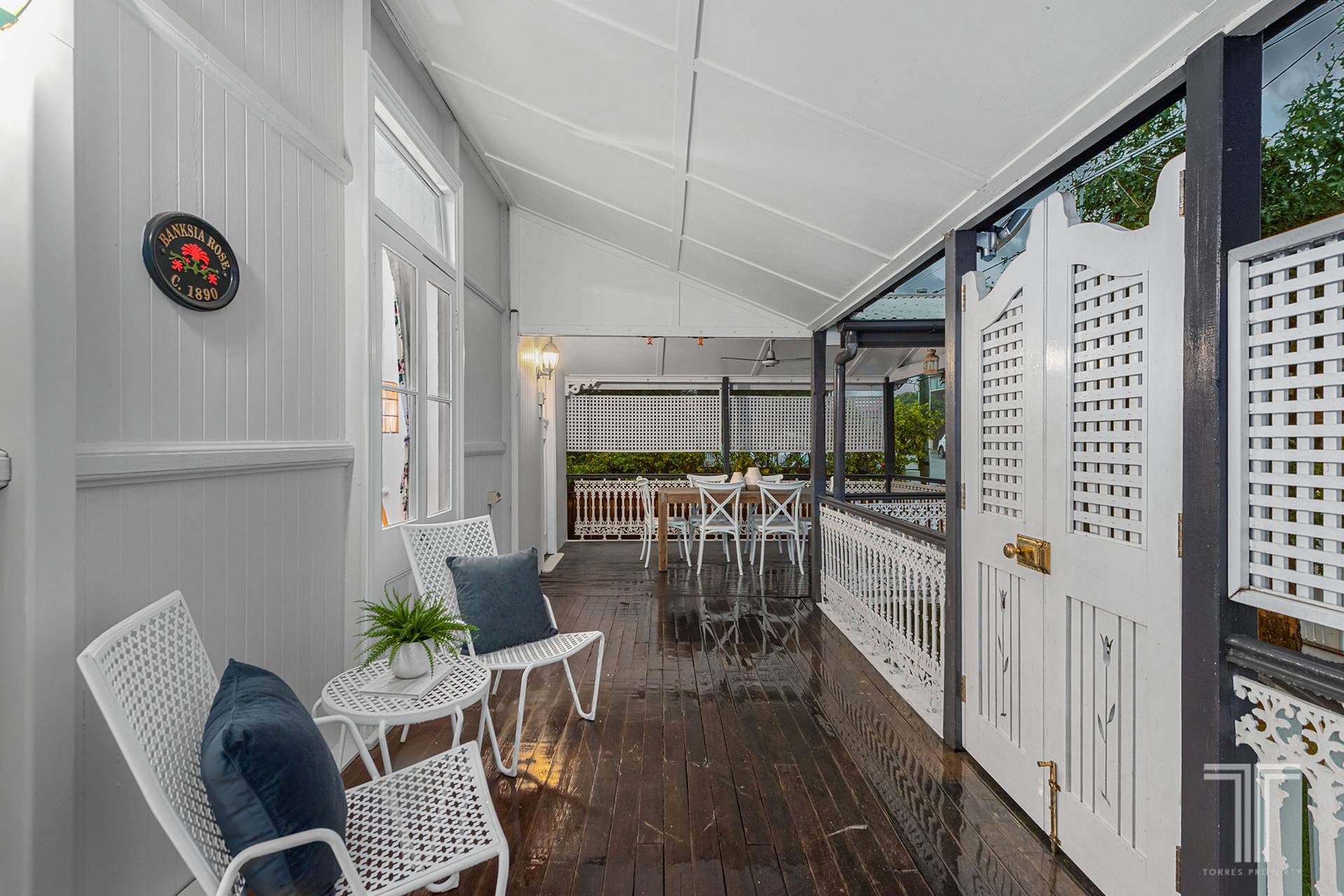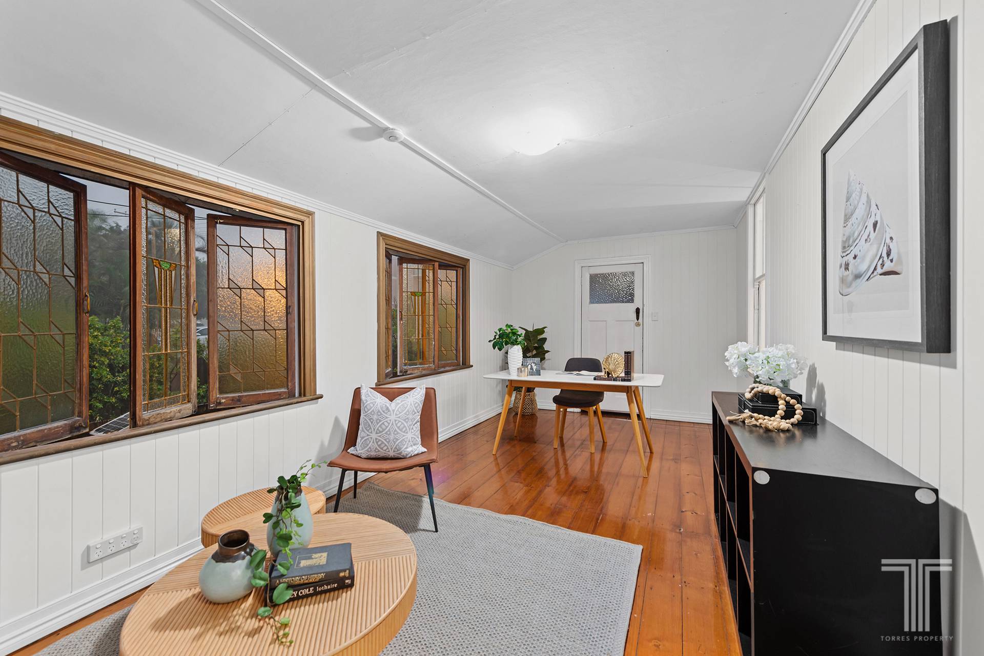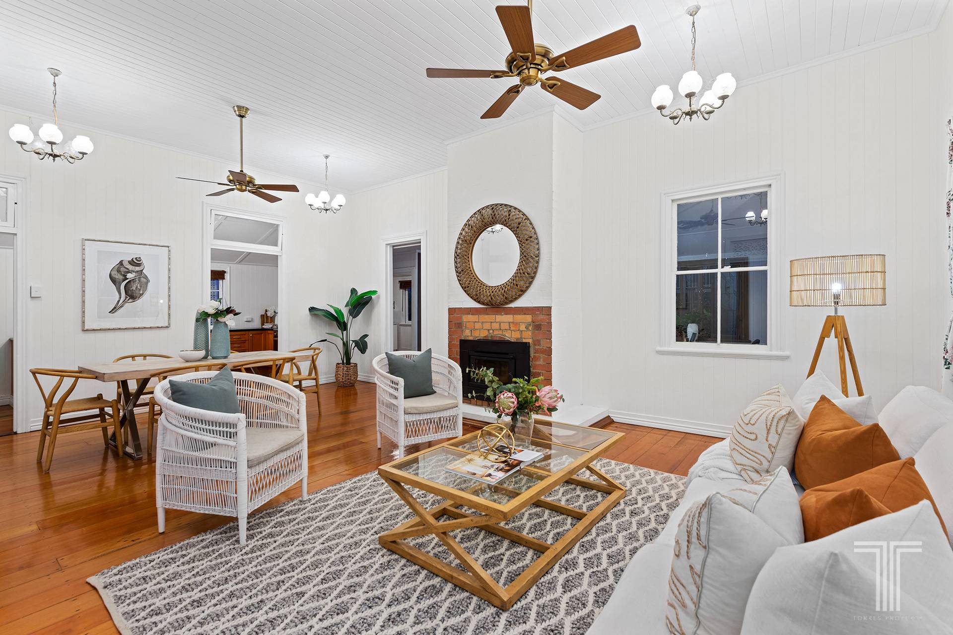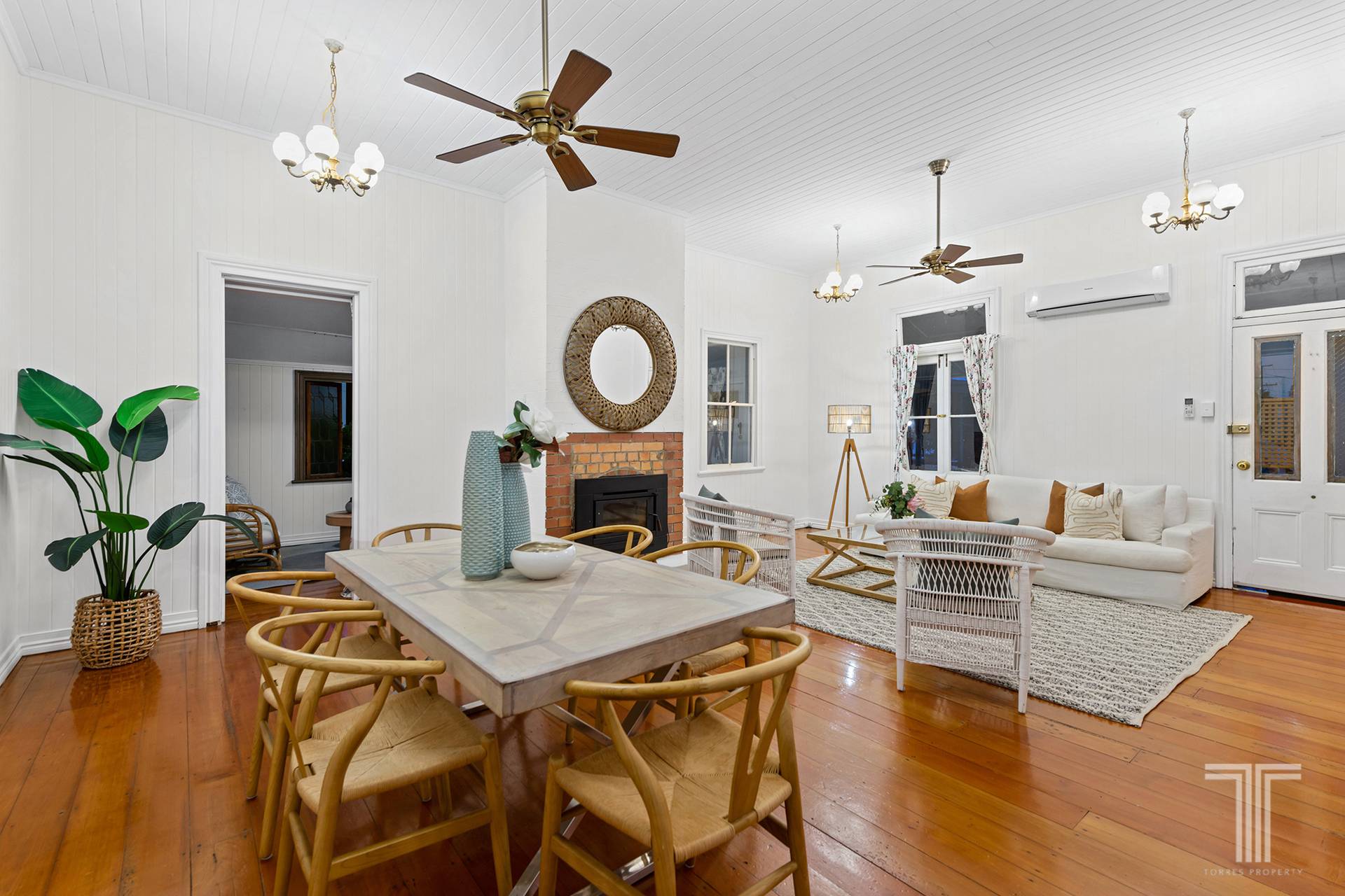 Retaining a wealth of period charm, the interiors are adorned with classic timber floors, VJ walls, high ceilings, sash windows, and air-conditioning. The exterior reveals a gabled roof and a large front deck with metal fretwork, which offers the ideal retreat to entertain and enjoy the tranquil leafy ambience.