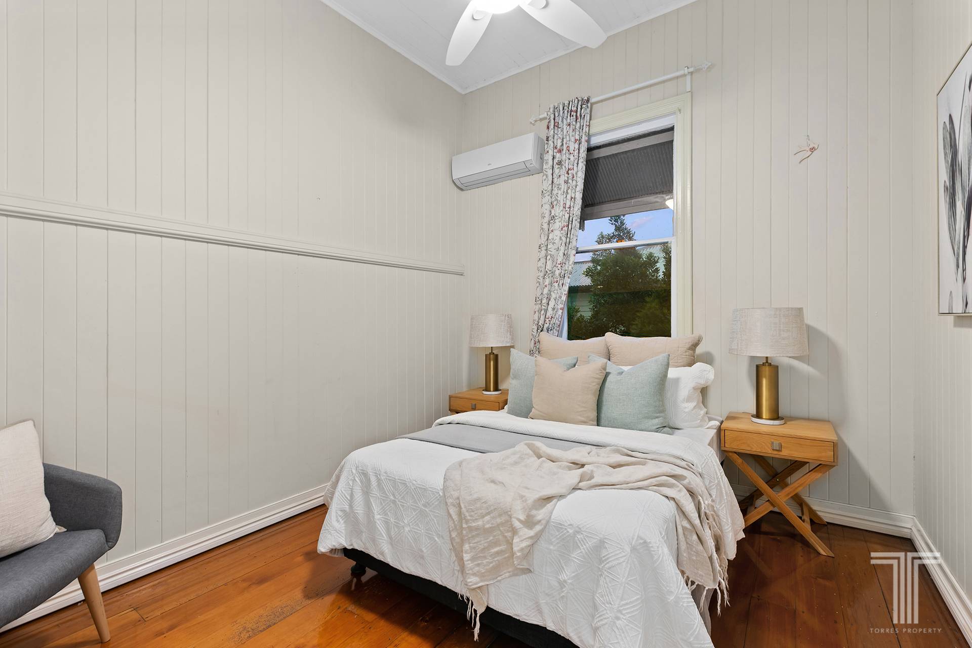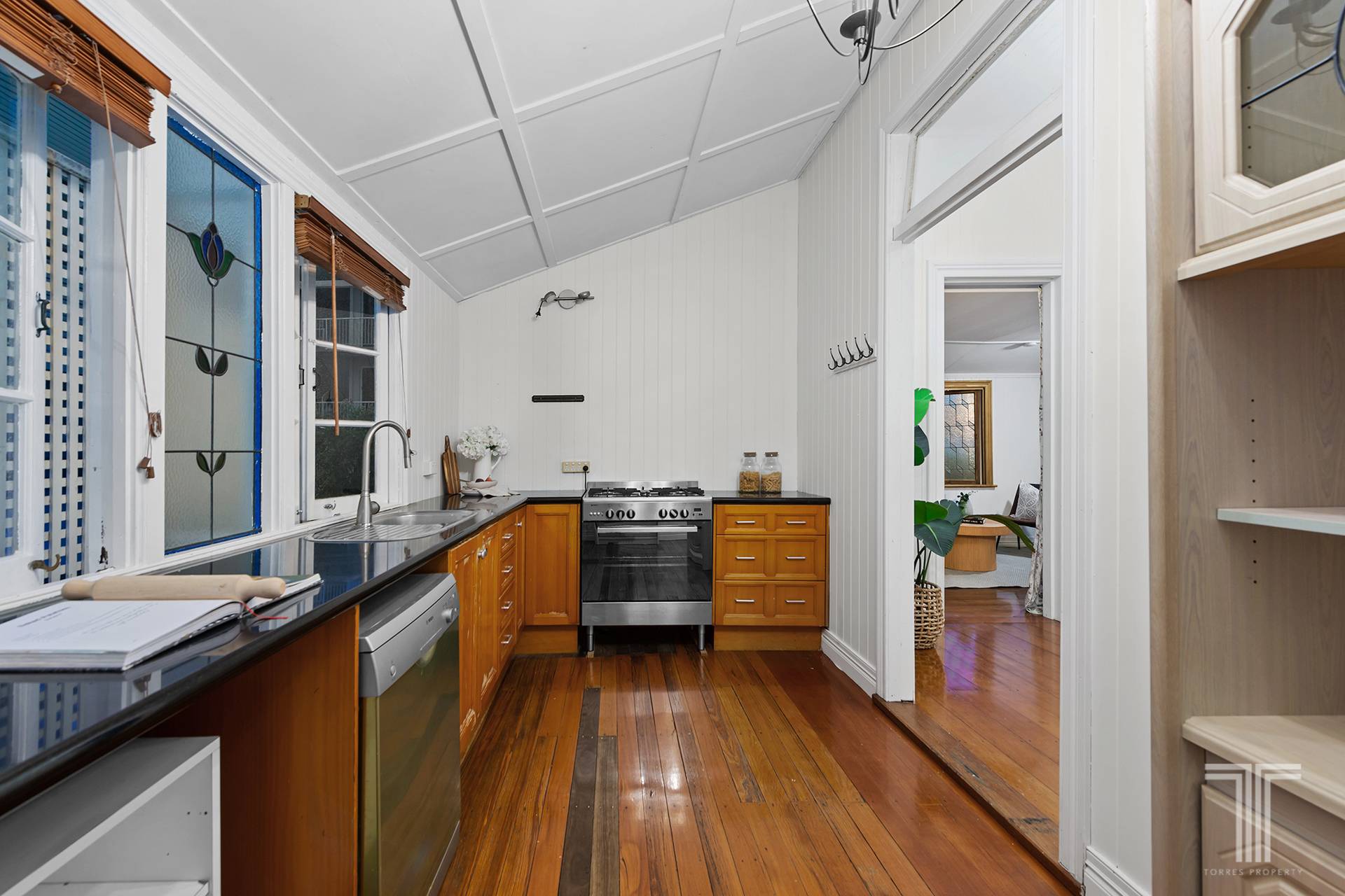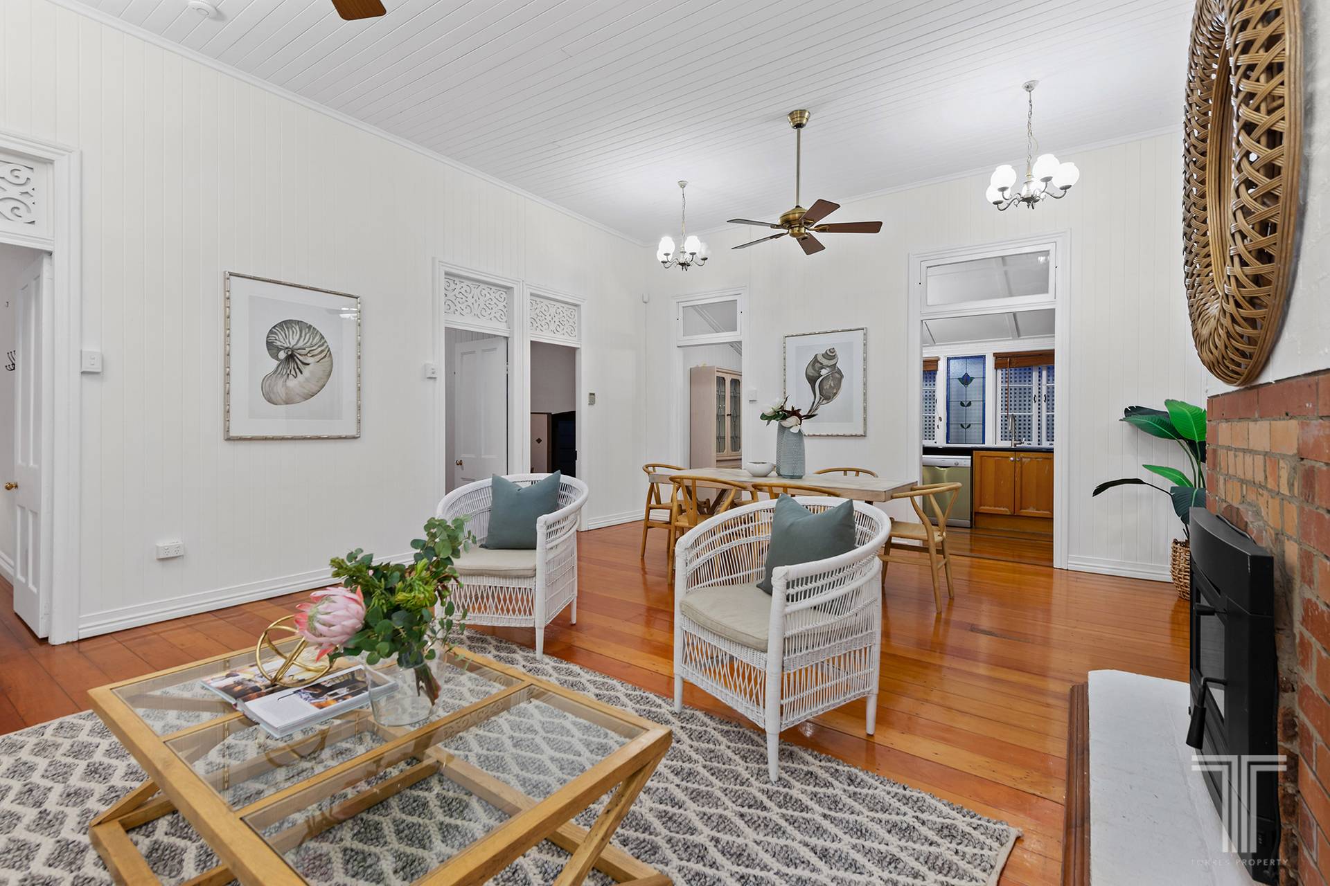 Retaining a wealth of period charm, the interiors are adorned with classic timber floors, VJ walls, high ceilings, sash windows, and air-conditioning. The exterior reveals a gabled roof and a large front deck with metal fretwork, which offers the ideal retreat to entertain and enjoy the tranquil leafy ambience.