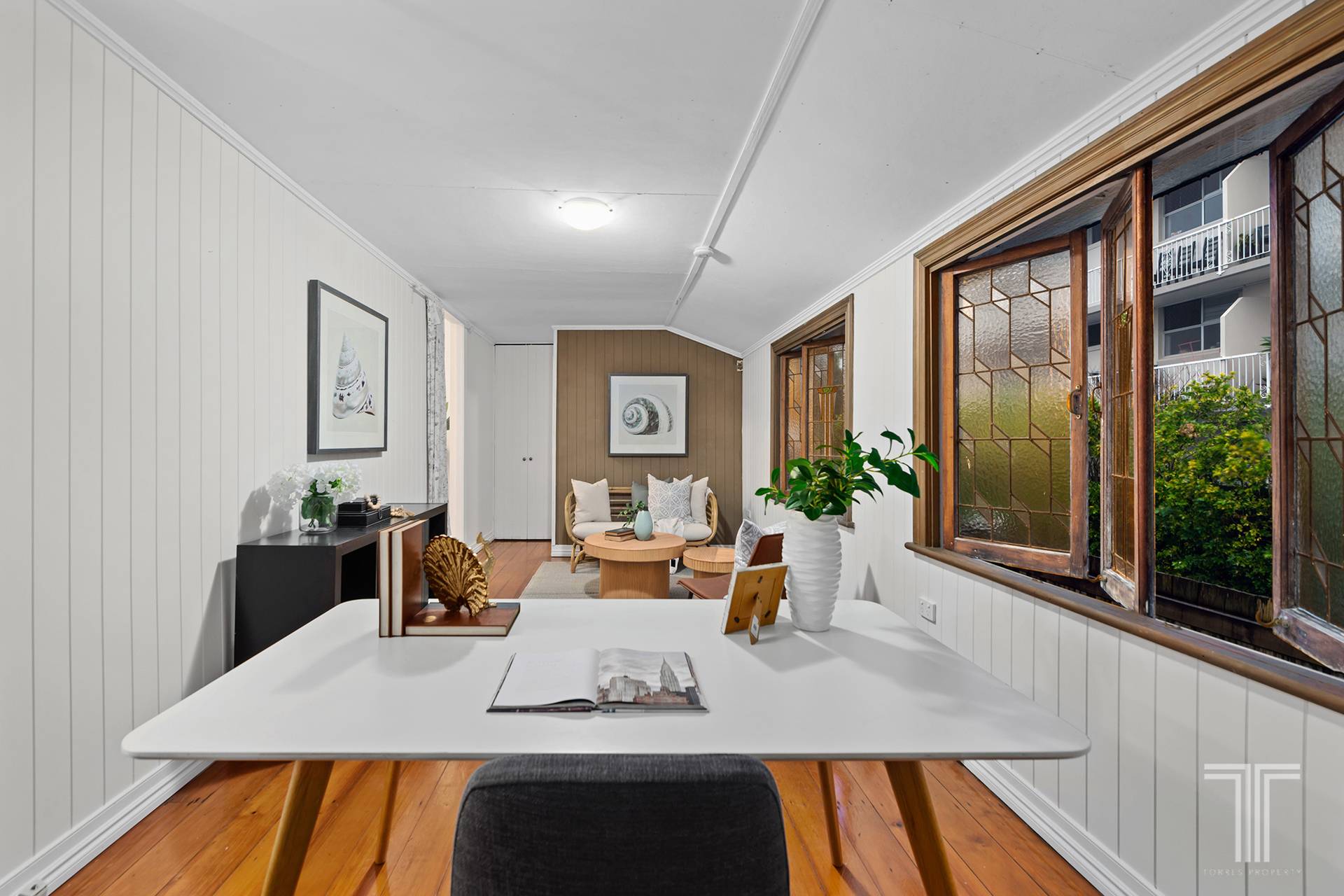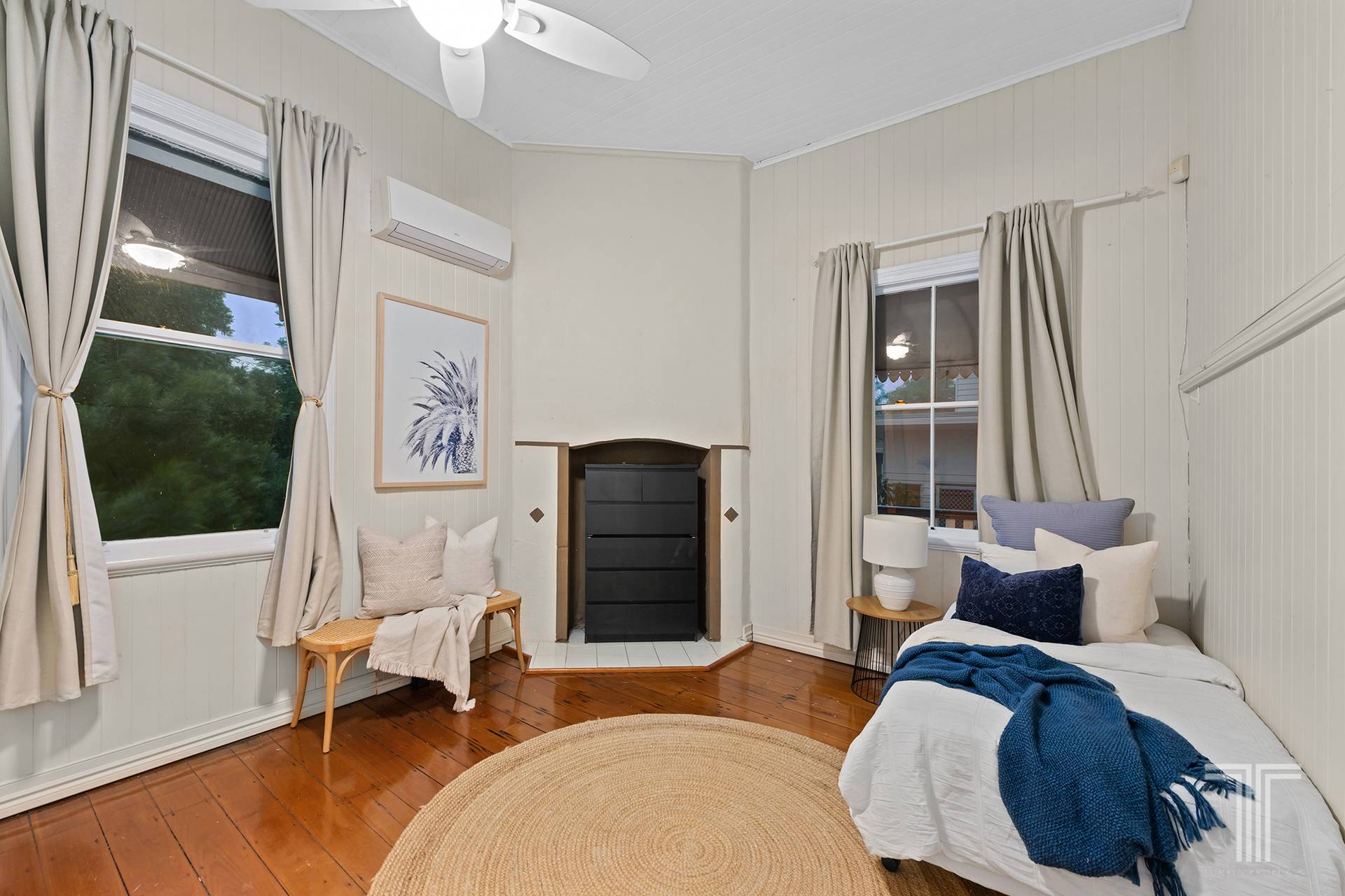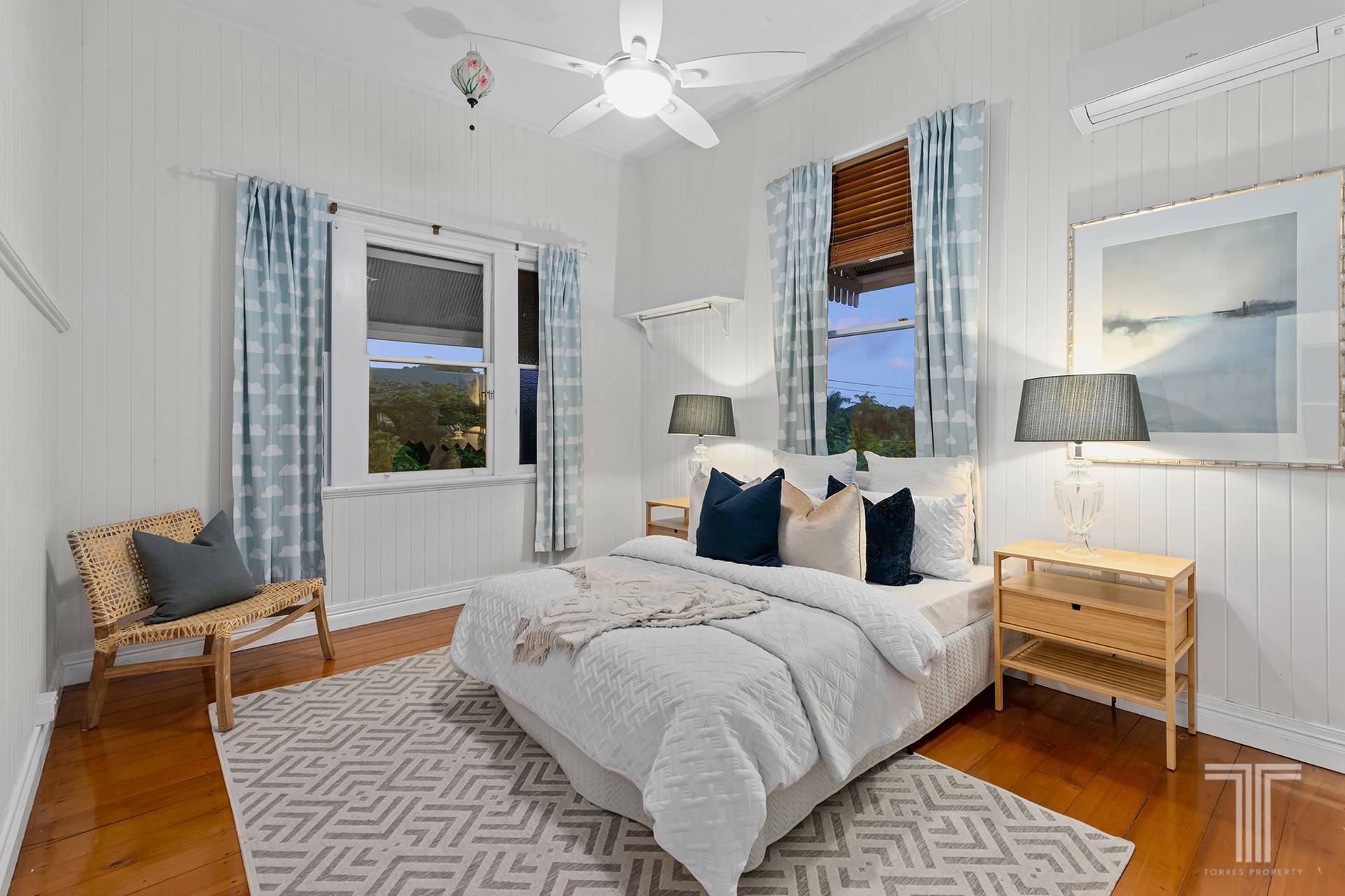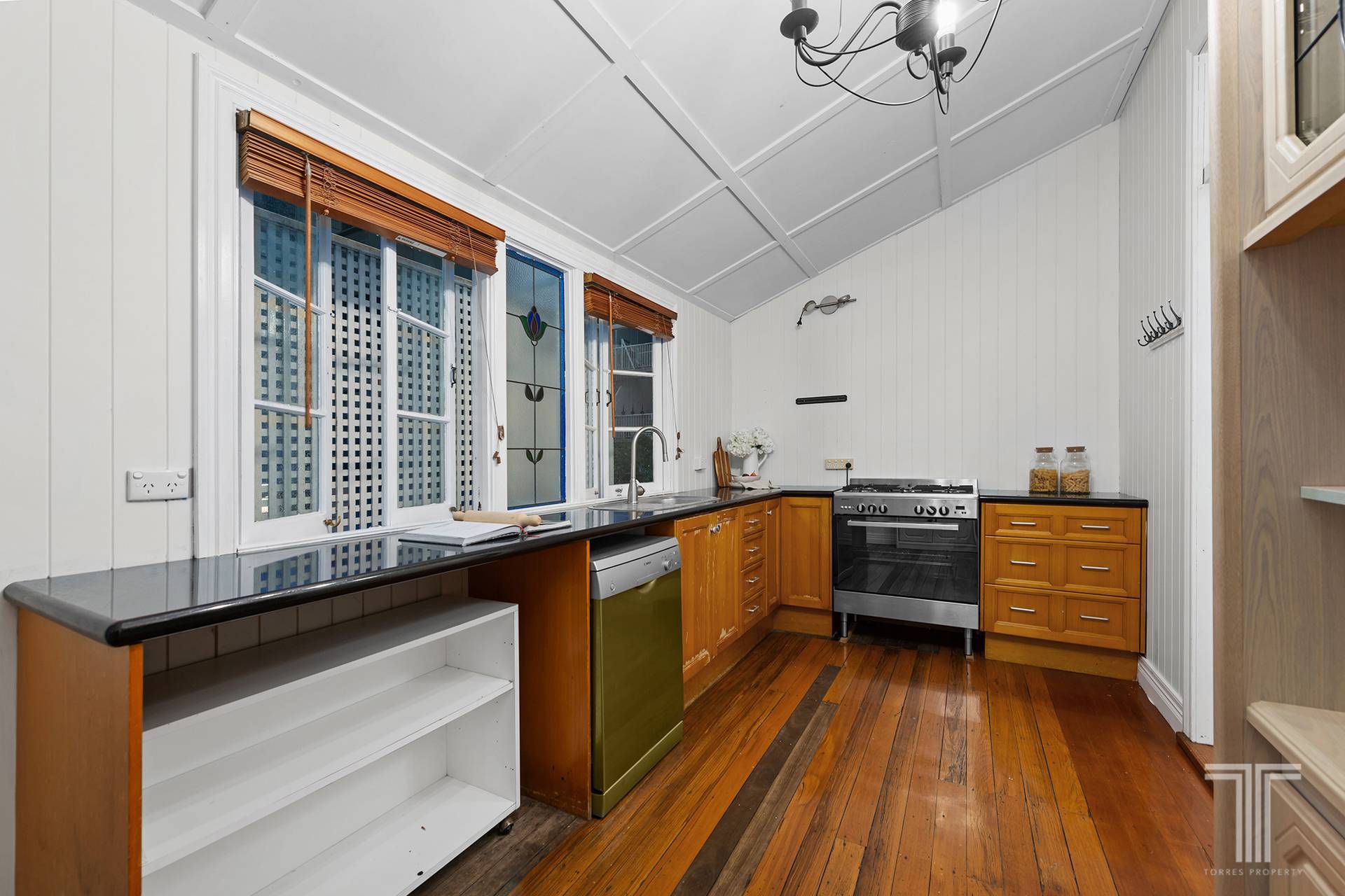 Retaining a wealth of period charm, the interiors are adorned with classic timber floors, VJ walls, high ceilings, sash windows, and air-conditioning. The exterior reveals a gabled roof and a large front deck with metal fretwork, which offers the ideal retreat to entertain and enjoy the tranquil leafy ambience.