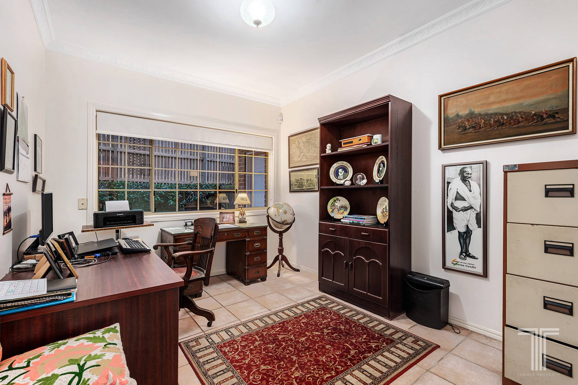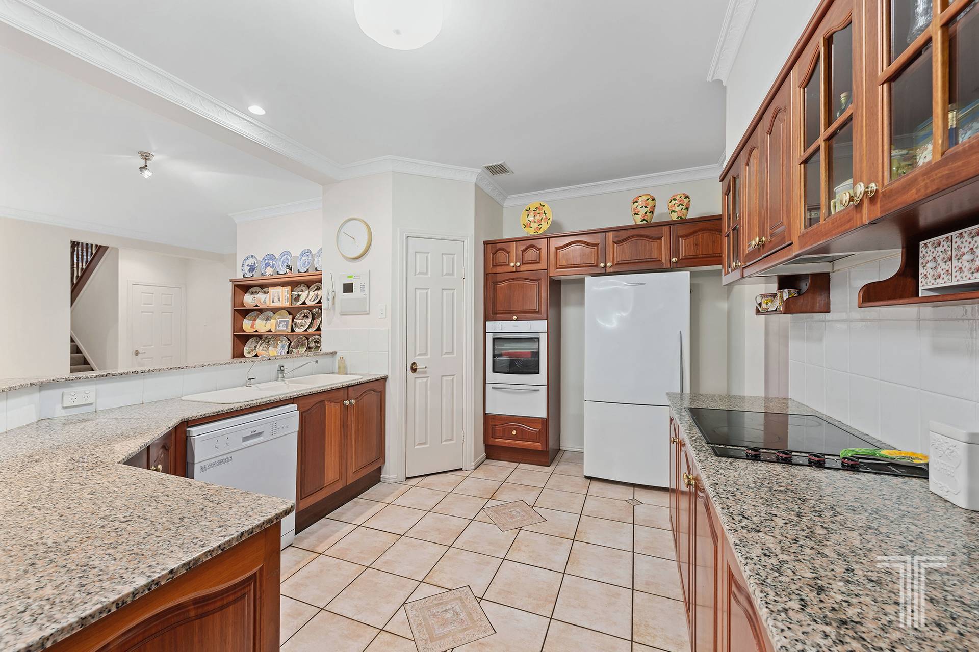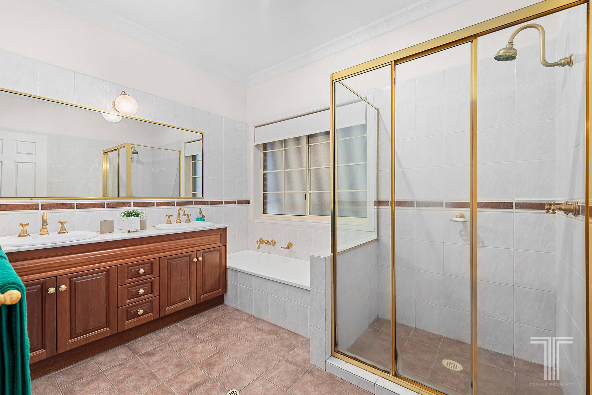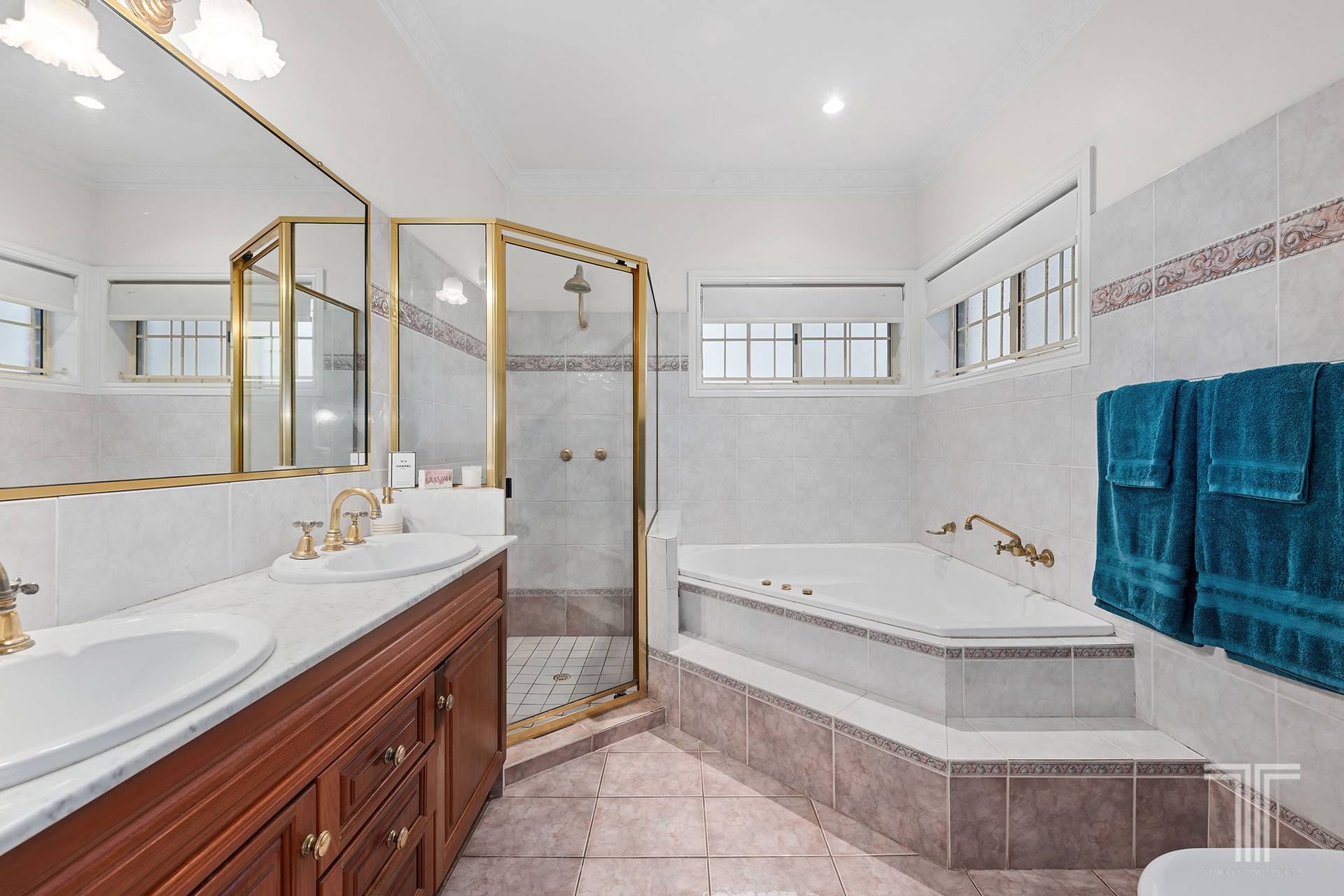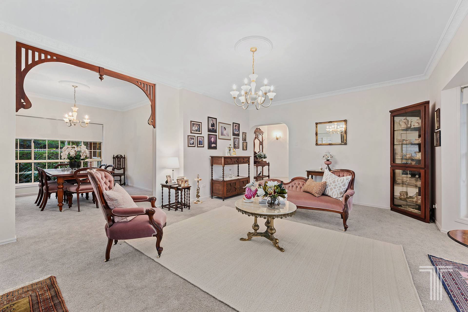 Families can relax and gather in the formal lounge and dining rooms featuring ornate ceiling roses and a cosy fireplace. The separate media room includes a wet bar, perfect for casual entertaining and fun movie nights. The family rumpus and meals area unveils an open design that adjoins the timber-clad kitchen with lovely granite benchtops.