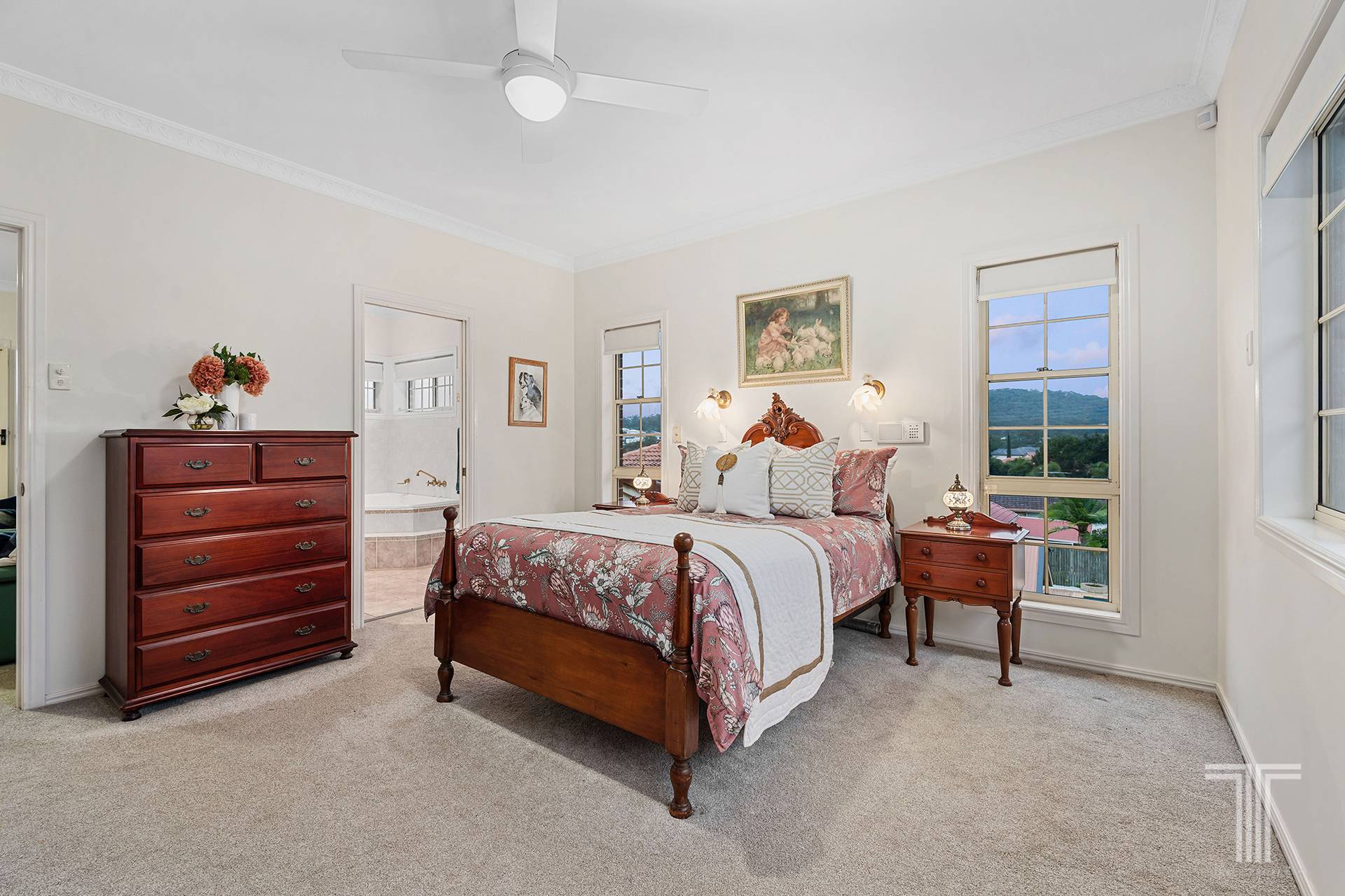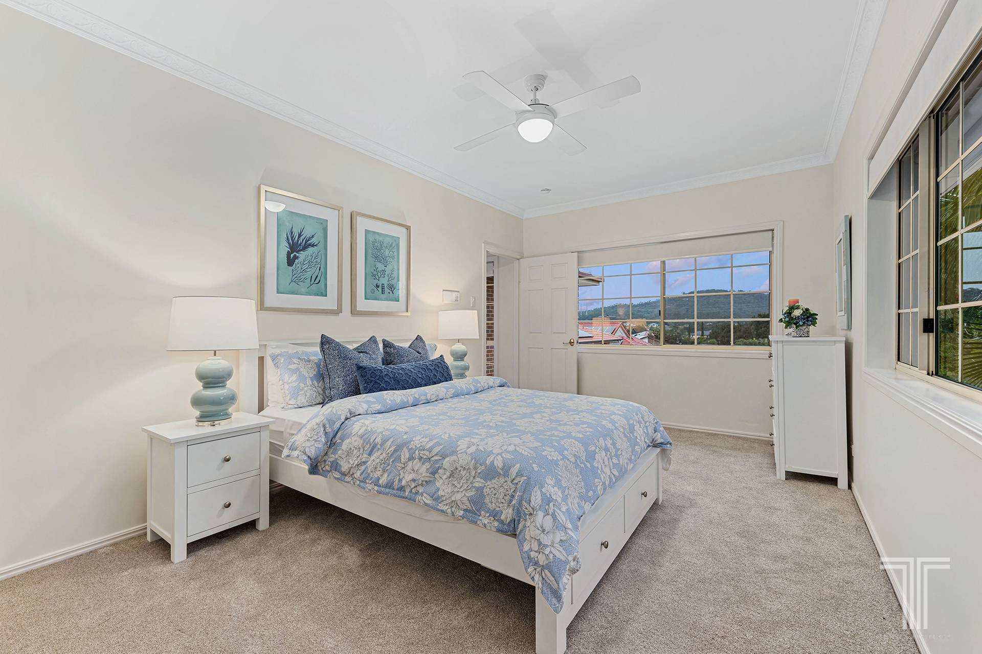 The inviting entryway opens to reveal interiors adorned with high ceilings, stylish tiles, freshly laid carpet and generously sized windows that filter an abundance of natural light. The master suite provides a perfect zone with a walk-in robe, a lavish spa bath and separate shower with twin vanity basins within the ensuite. This couple's retreat opens to a balcony gazing over the beautiful landscape and rolling hillside.