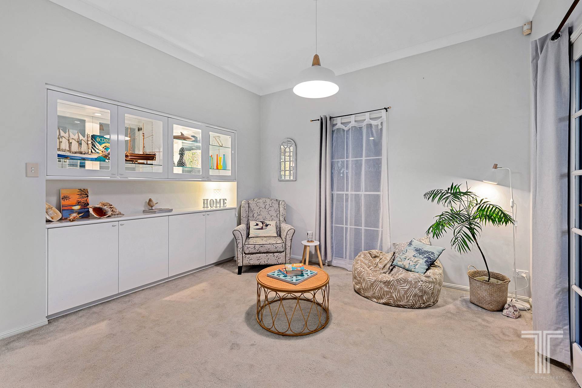 The entryway greets you with soaring ceilings, a chandelier and an inviting ambience. The lounge room leads off this foyer and features large windows, natural light and French doors that open to the private courtyard, perfect for an afternoon drink.