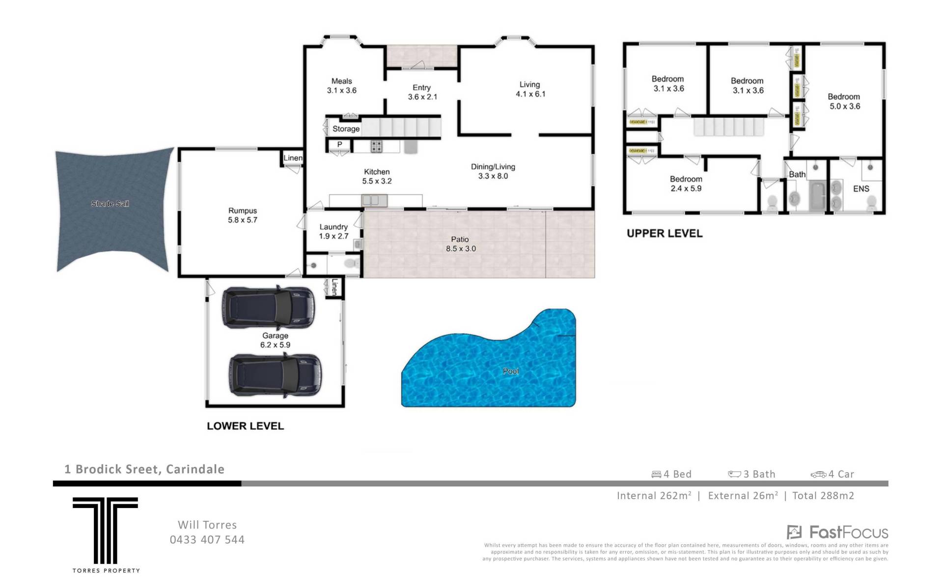 4 Beds 3 Baths 4 Cars Pool 781 m2