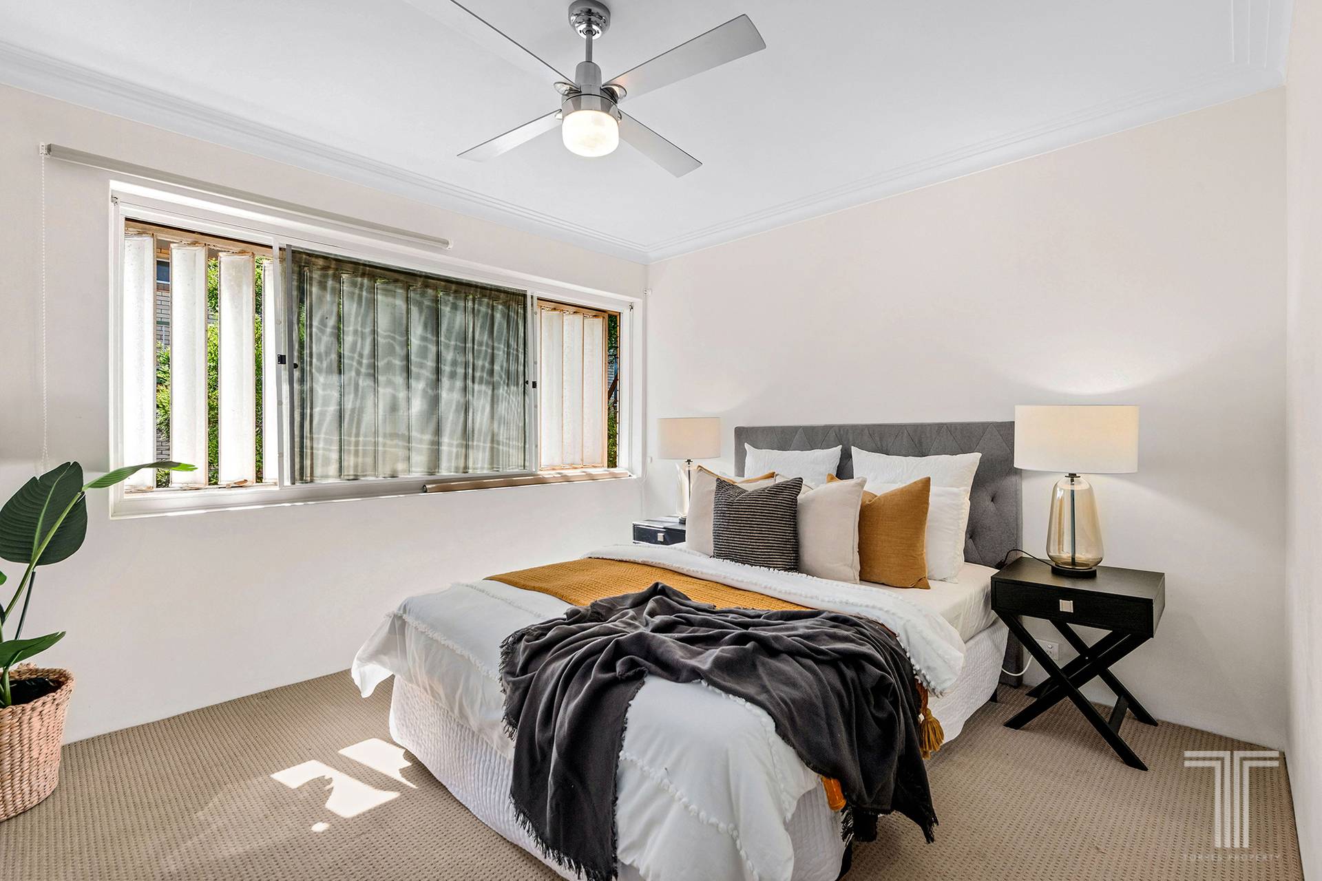 Two good-sized bedrooms feature carpeted floors, and one includes air-conditioning. Servicing these bedrooms is a generous bathroom/laundry and a separate toilet with fresh paint.