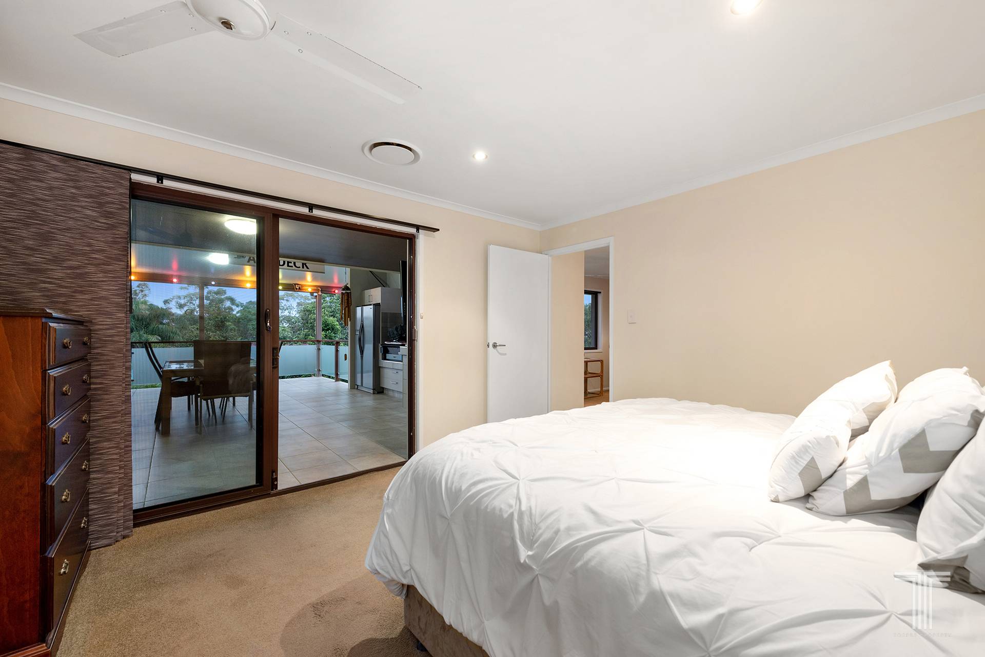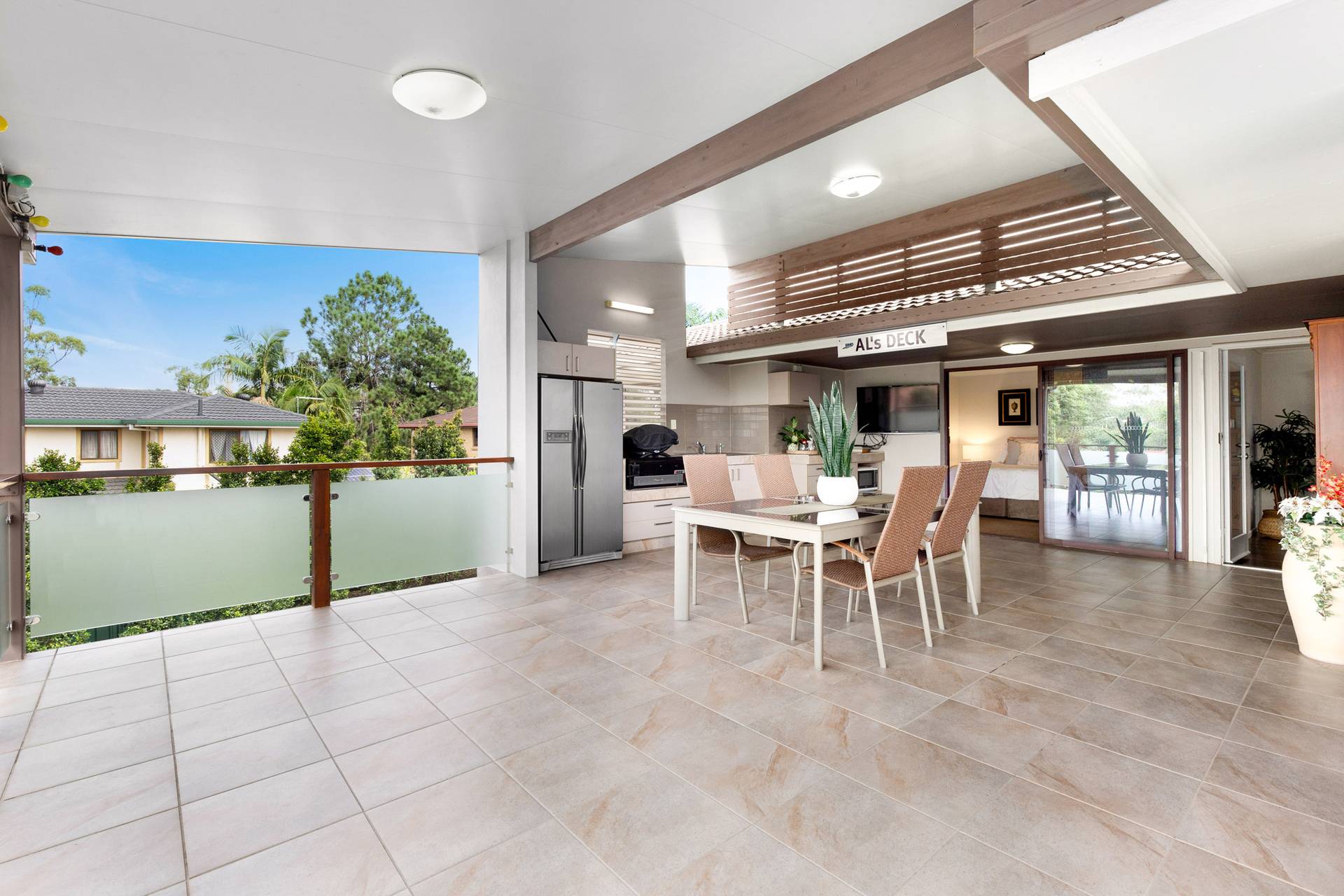 A wonderful retreat, an expansive deck runs the length of the house and provides the perfect setting for alfresco living and entertaining. This space is well-appointed with an outdoor kitchen equipped with cabinetry and room for a BBQ, fridge and microwave. Harnessing sweeping views across the treetops and out to Westfield Carindale, residents will love the peaceful ambience and tranquil scenery. Stairs lead from the deck to the spacious backyard below. Featuring manicured lawns, an undercover patio and beautiful trees along the fence line, there is plenty of room for sports, kids and pets.