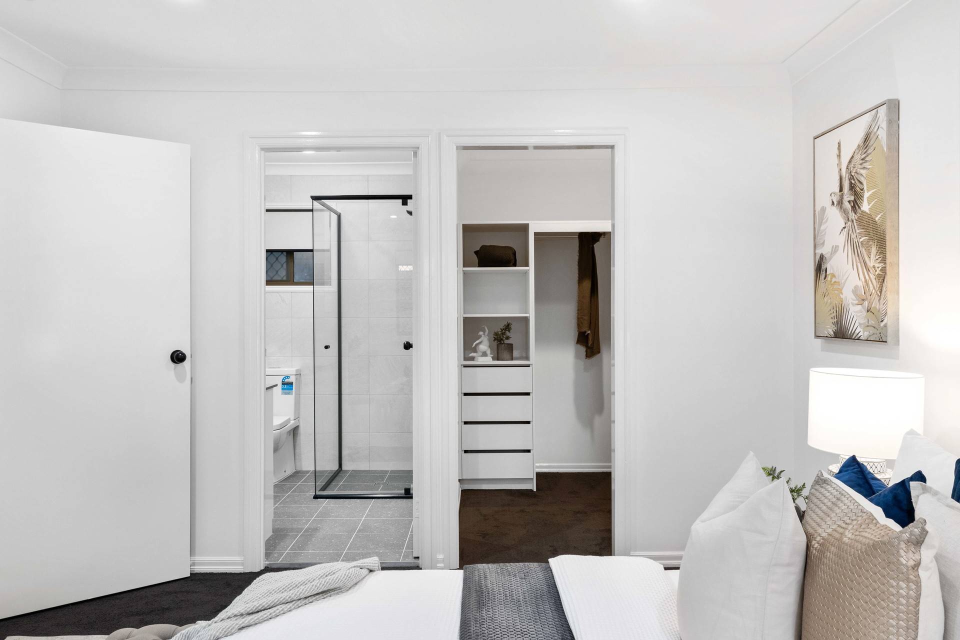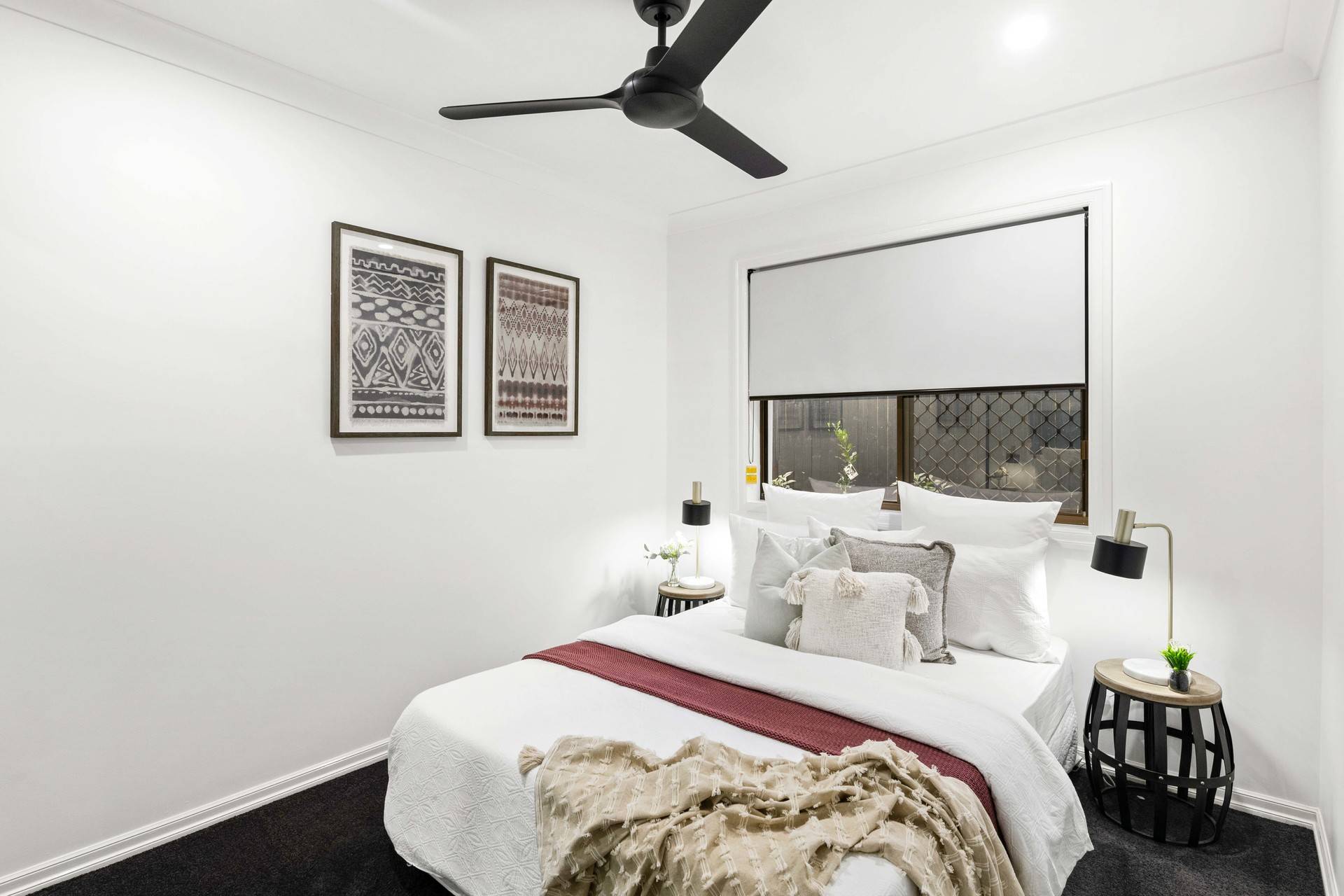 A second lounge room provides breakout space and accompanies four carpeted bedrooms. The master includes air-conditioning, a walk-in robe and an ensuite with floor-to-ceiling tiles and matte black fixtures. The additional bedrooms feature built-in robes and access to the family bathroom, separate toilet and internal laundry. Finalising the property is a double car garage, security screens and ceiling fans.