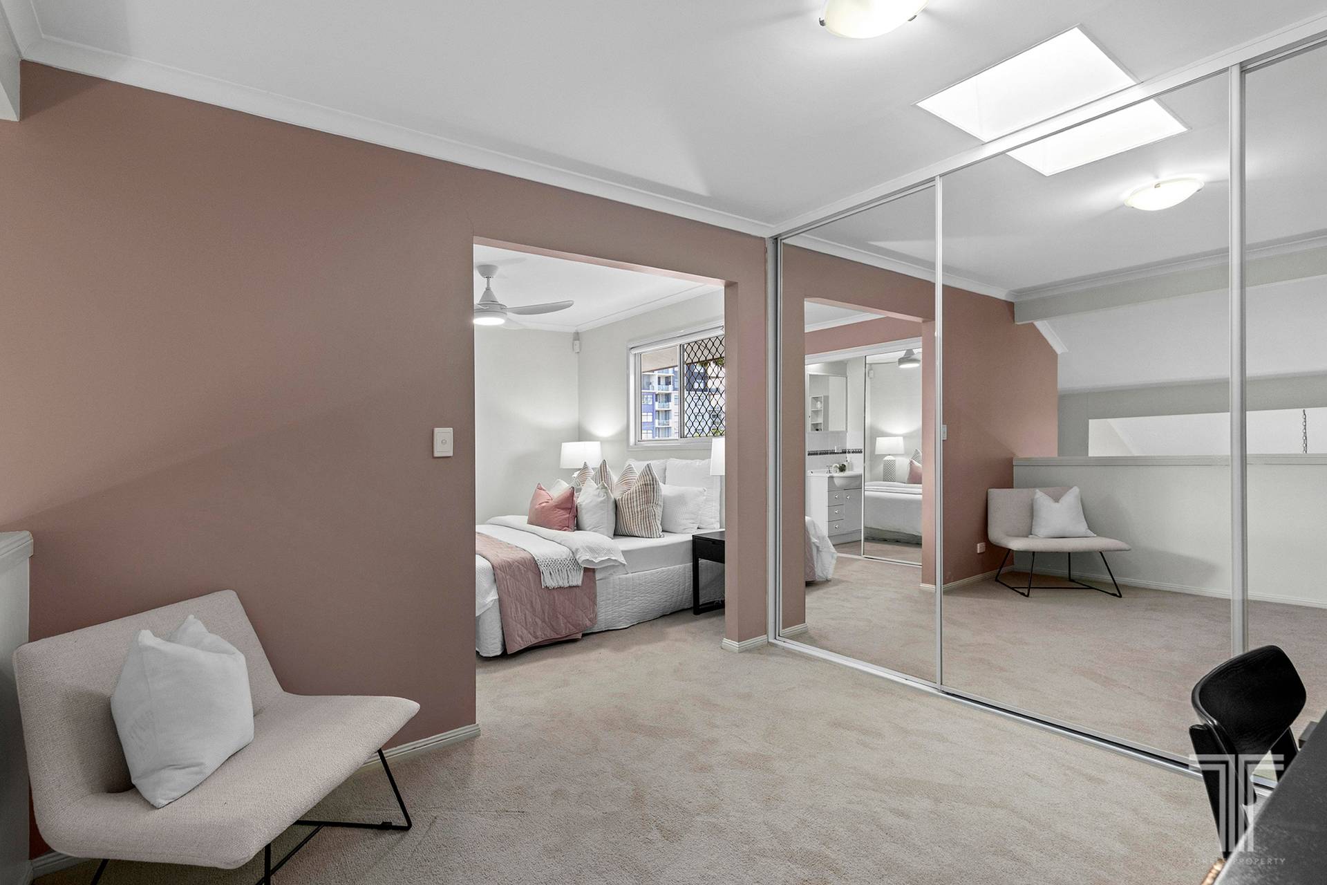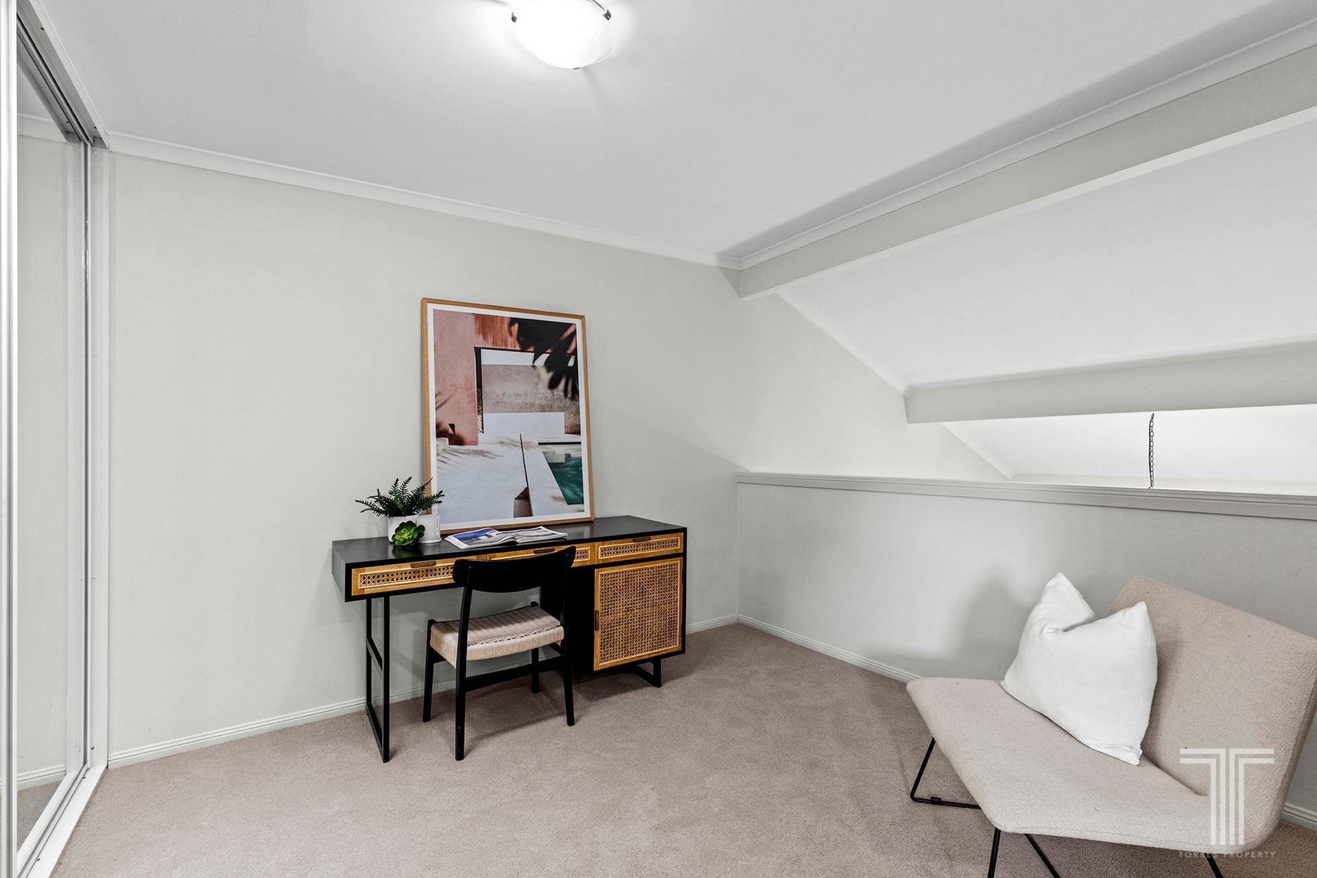Two bedrooms with built-in robes and two bathrooms are split over two levels, including a master suite upstairs with a lovely retreat/office and an exclusive ensuite.