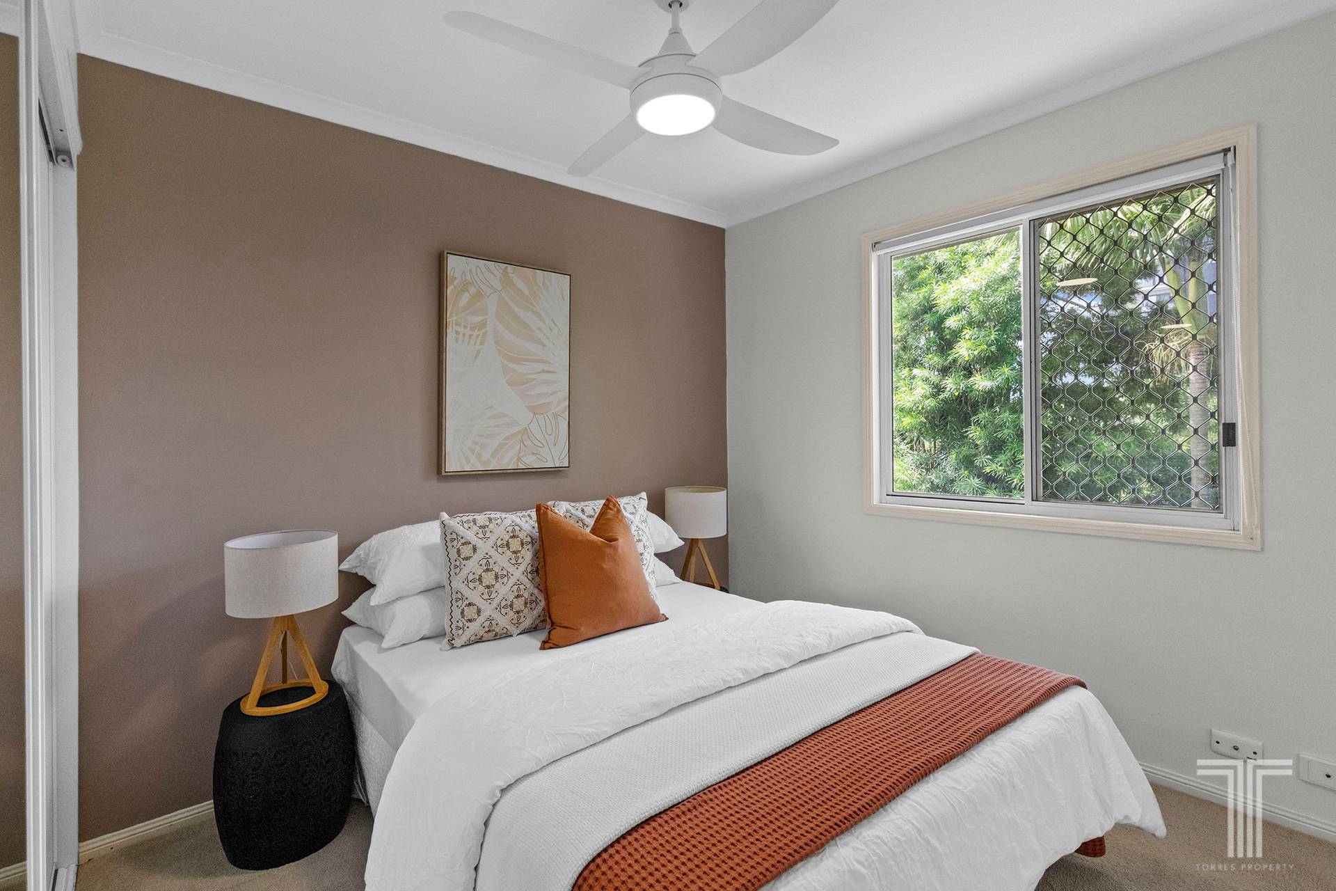 - Ceiling fans, security screens and built-in robes