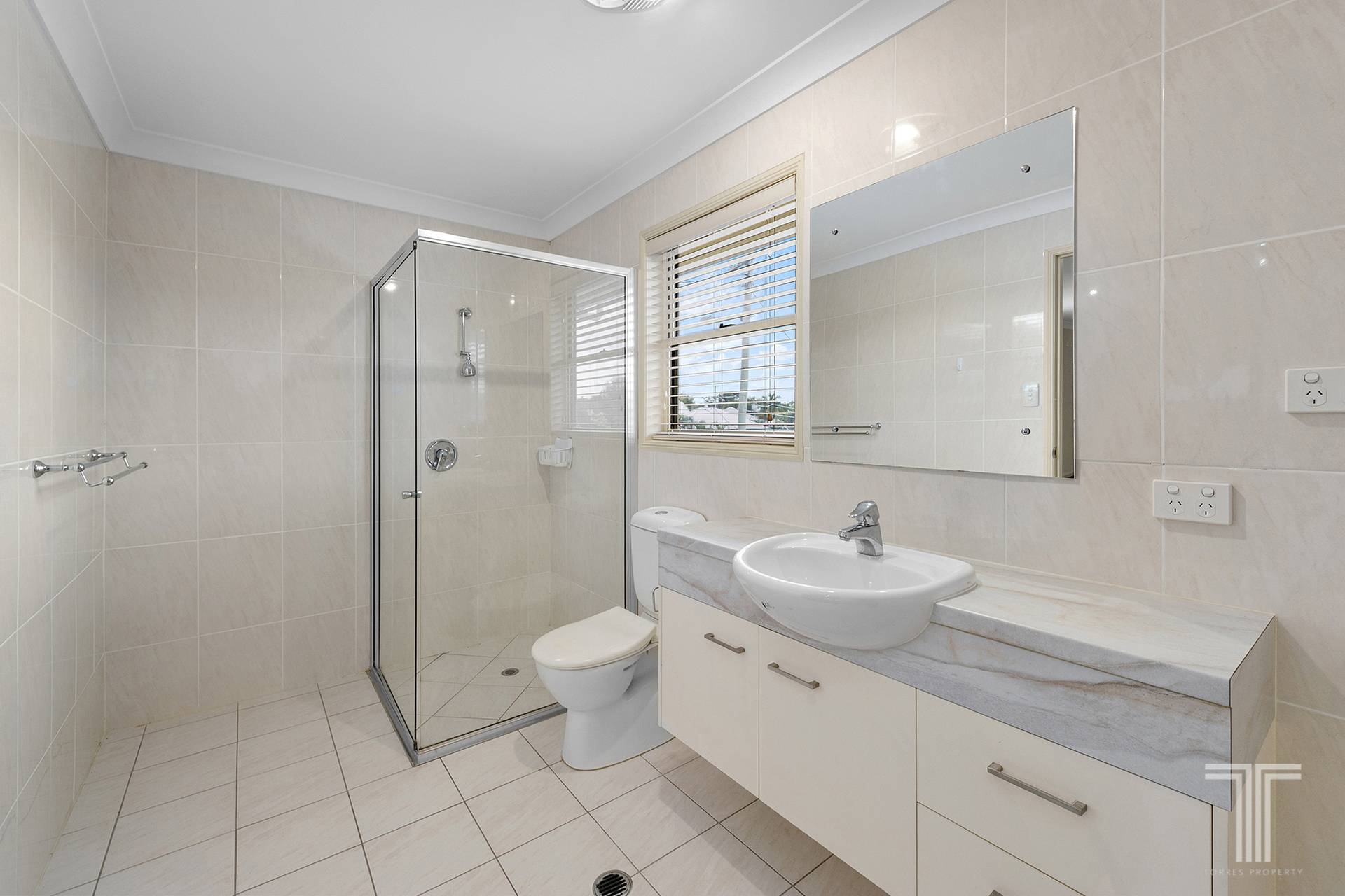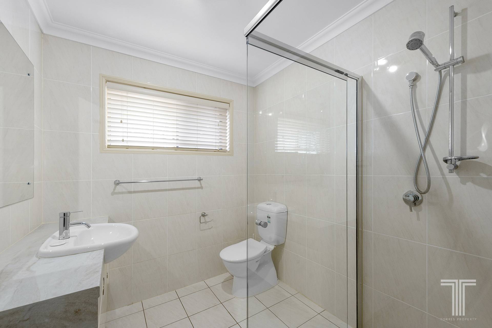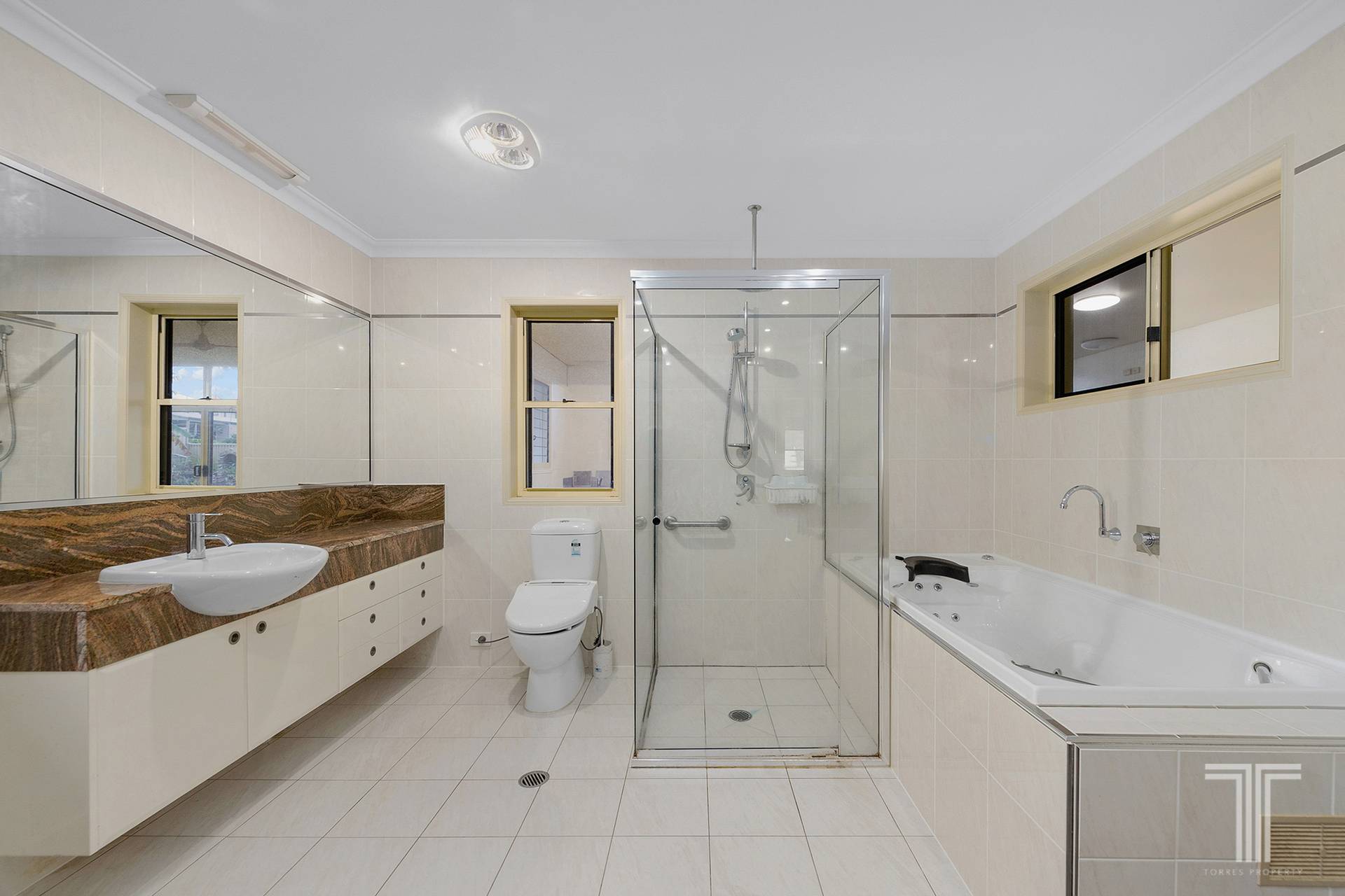 The lower level is also home to the master suite, main bathroom and laundry. The carpeted master bedroom offers a large built-in robe with mirrored doors and connects seamlessly to the luxurious tiled ensuite. The ensuite boasts a spa bath and a shower equipped with a support bar, waterfall and hose showerhead and marble benchtop vanity.