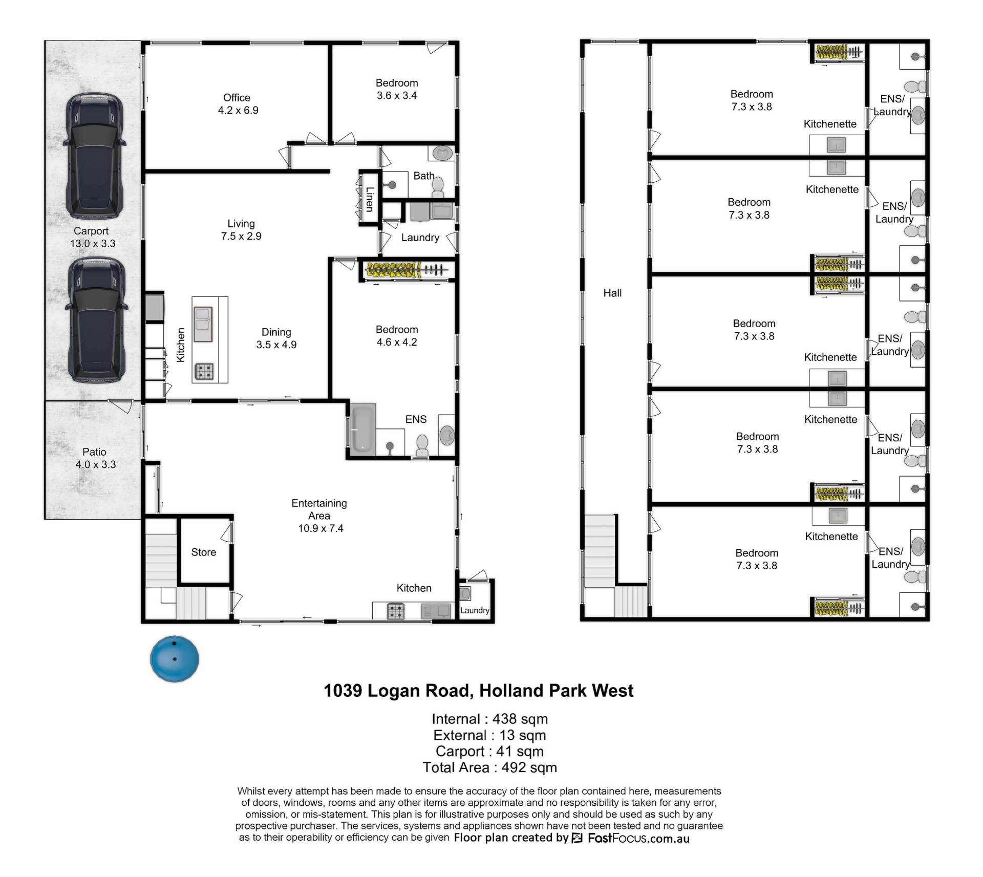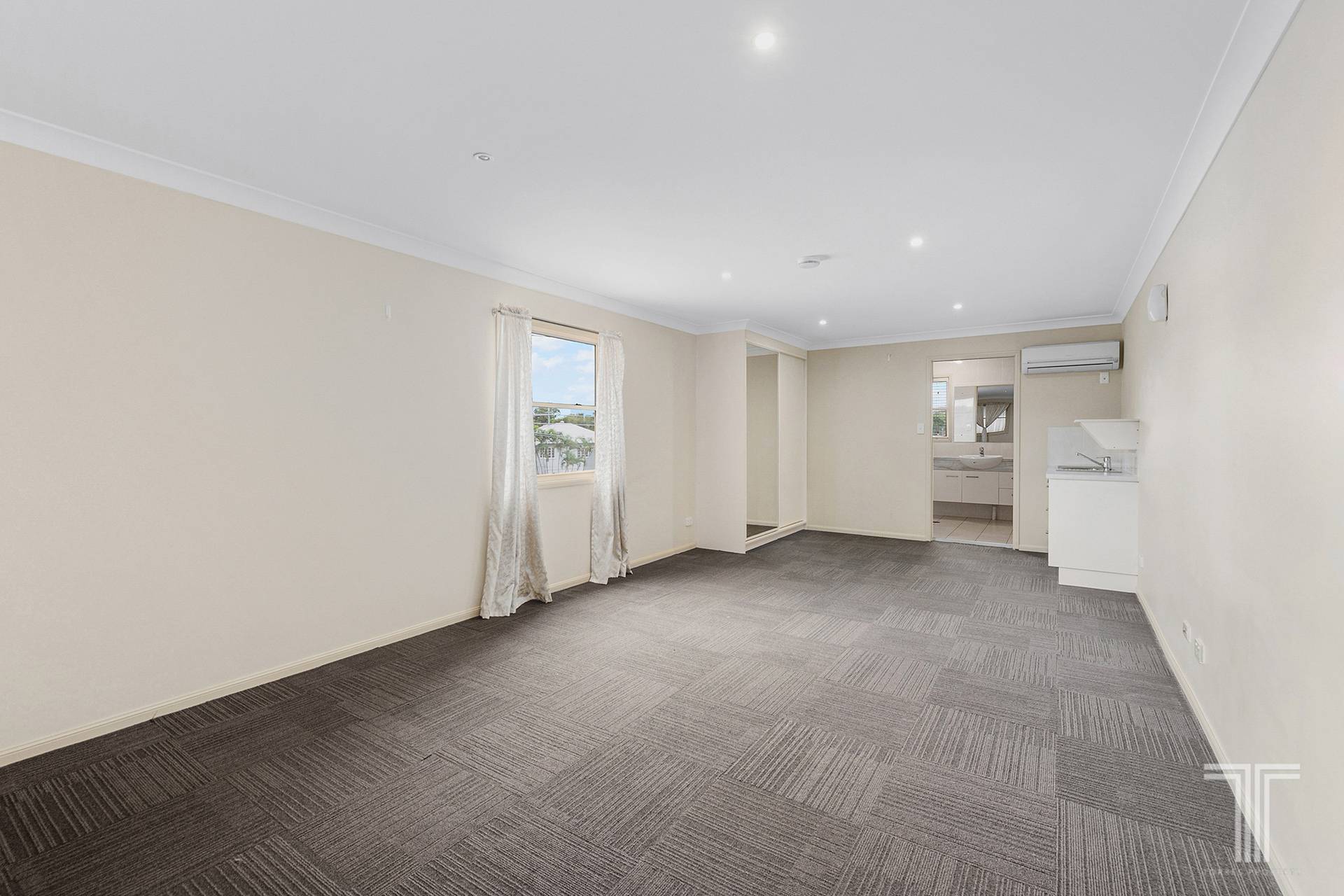 The upstairs of the property is a unique arrangement, making this the perfect investment property or dual-living residence. Boasting 5 studio style bedrooms*, each featuring a kitchenette, built-ins with mirrored doors, separate meter box, and ensuite equipped with shower, toilet, single basin vanity, and taps and pipes for laundry.