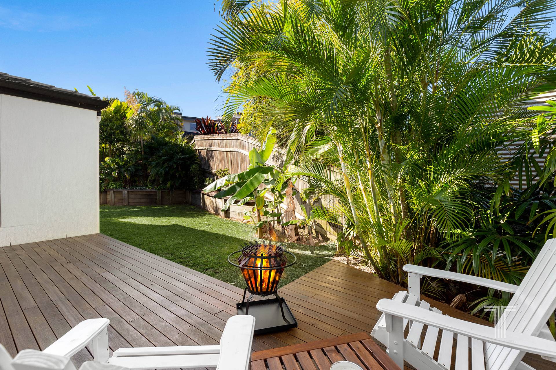 Flowing continuously from this space is the formal dining area, which connects the expansive lounge that opens through glass doors to the extensive rear deck. This private outdoor space overlooks the fully fenced and landscaped low-maintenance backyard, ideal for hosting barbeques with family and friends.