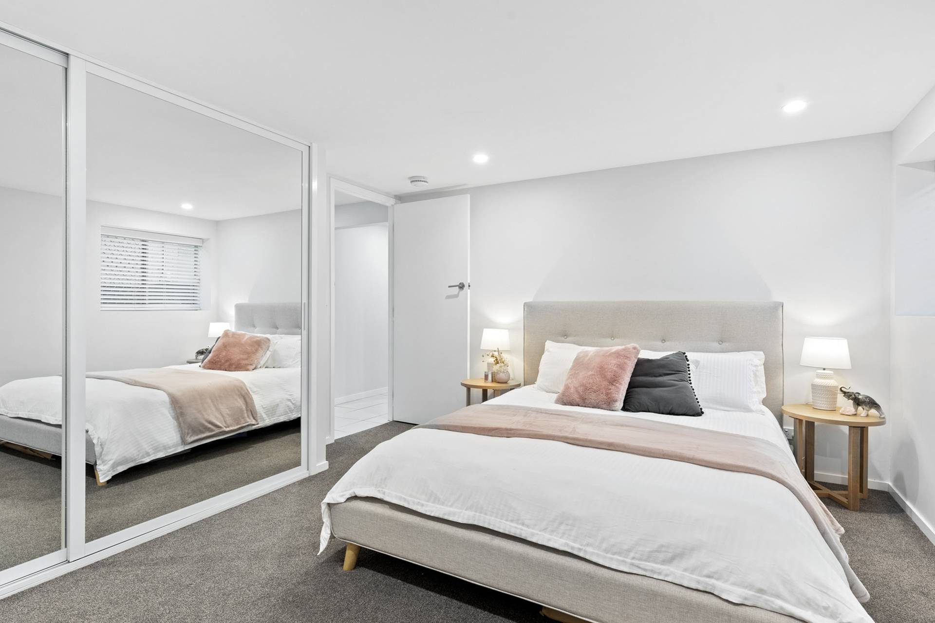 The upper level has been well-designed with an open plan lounge and dining area adorned with timber floors, air-conditioning and dimmable lights. Creating flow and function, this central living space leads into a light-filled rumpus/playroom and an exquisite modern kitchen. Designed for the home cook, the kitchen reveals stunning stone benchtops, soft-close drawers, an Electrolux gas stove, dishwasher, a tucked-away appliance cupboard, walk-in pantry and a servery to the entertainer's deck.