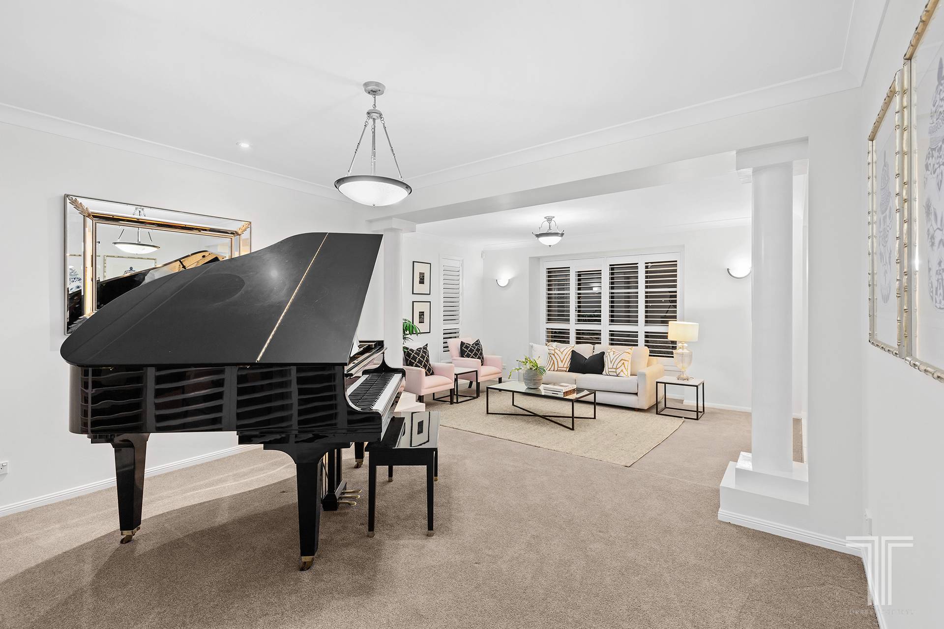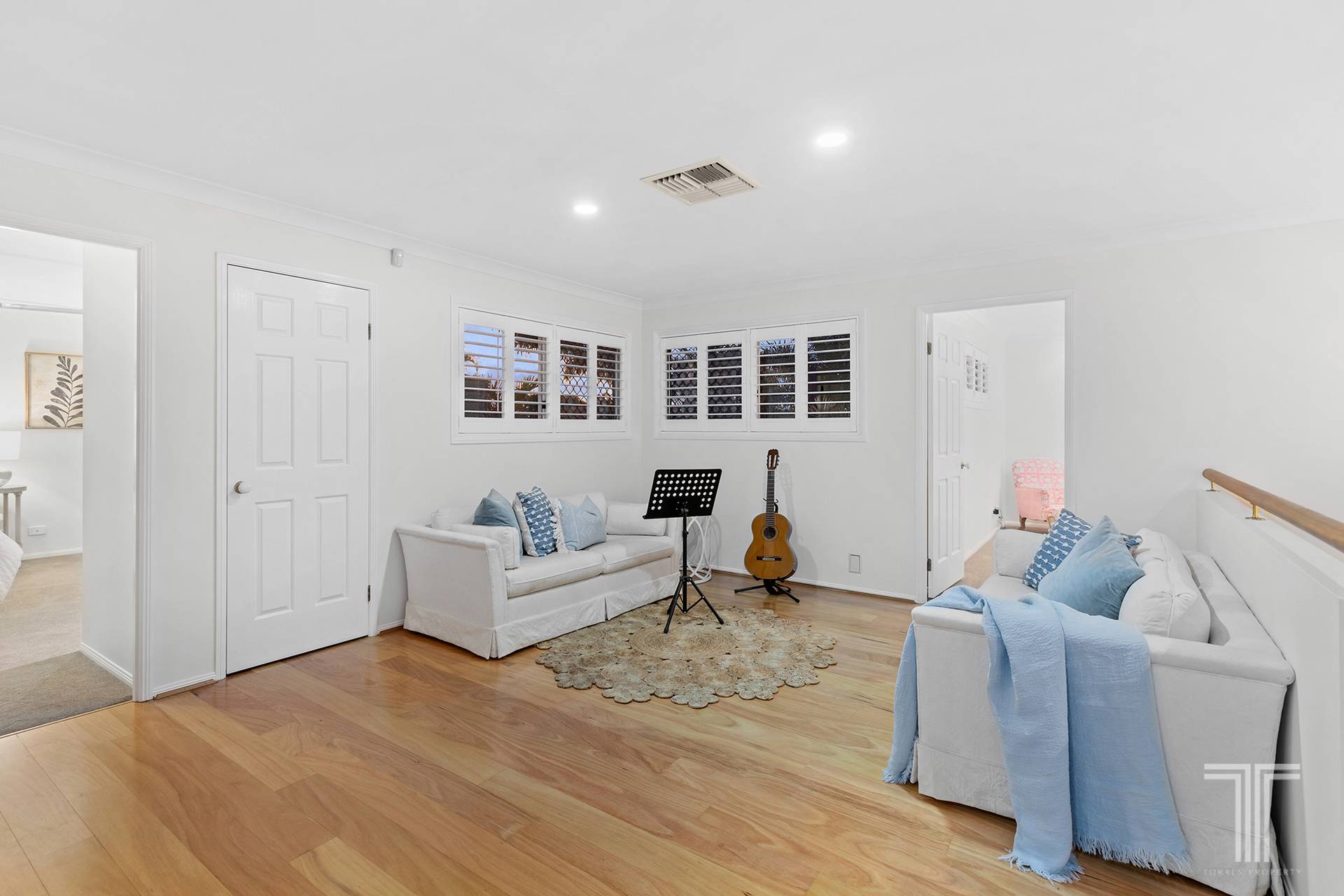 Finalising the ground floor is a study and a guest suite with a two-way bathroom. The upper level houses an additional living area and four generous bedrooms. The master suite boasts a walk-in robe and an ensuite with a spa bath, while a second bathroom services the rest of the floor.
