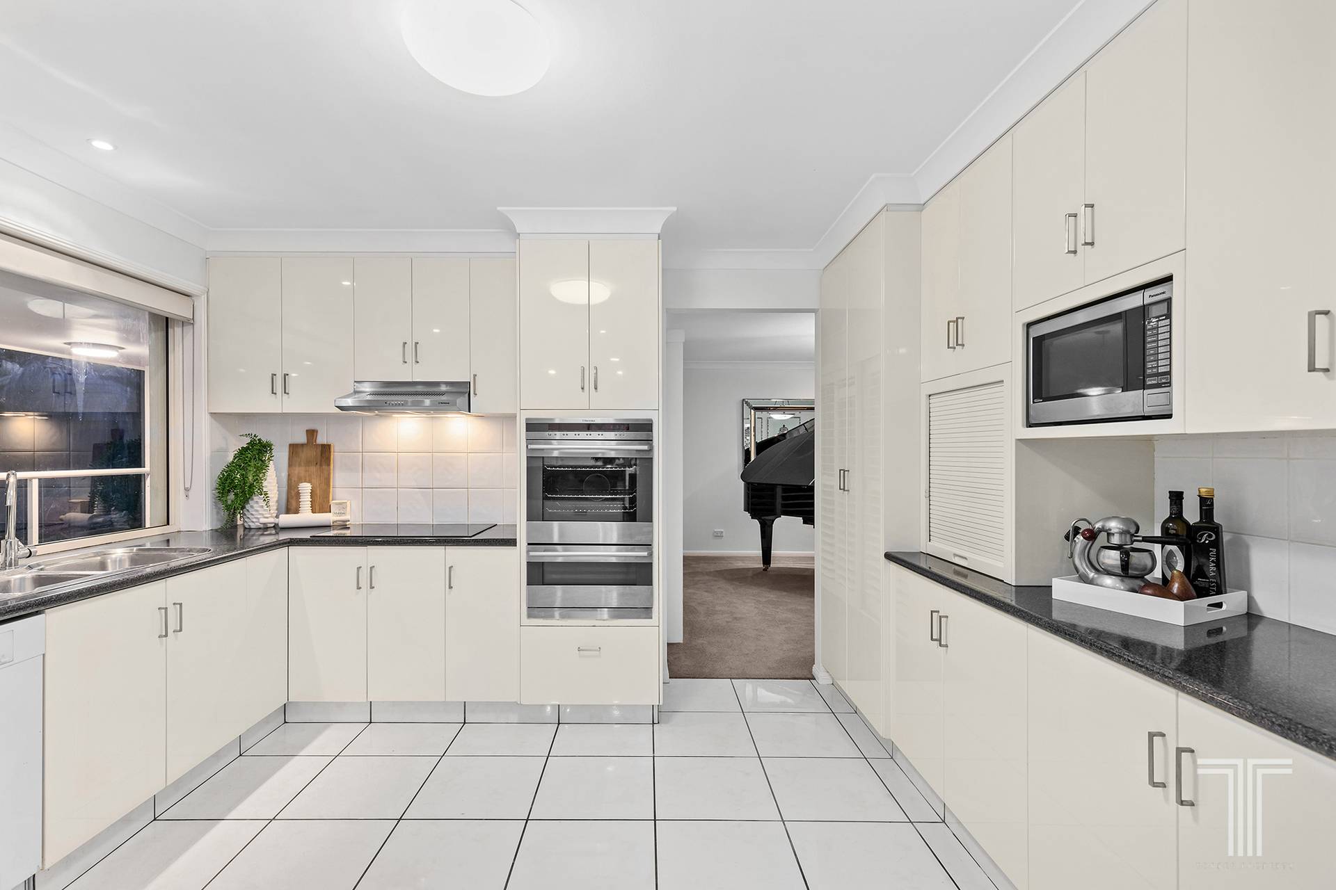 The ground floor is home to multiple living areas, providing separation for children, parents and guests. The living zones lead seamlessly into the central kitchen and dining area, featuring extensive storage with rows of cabinetry and large benchtops.