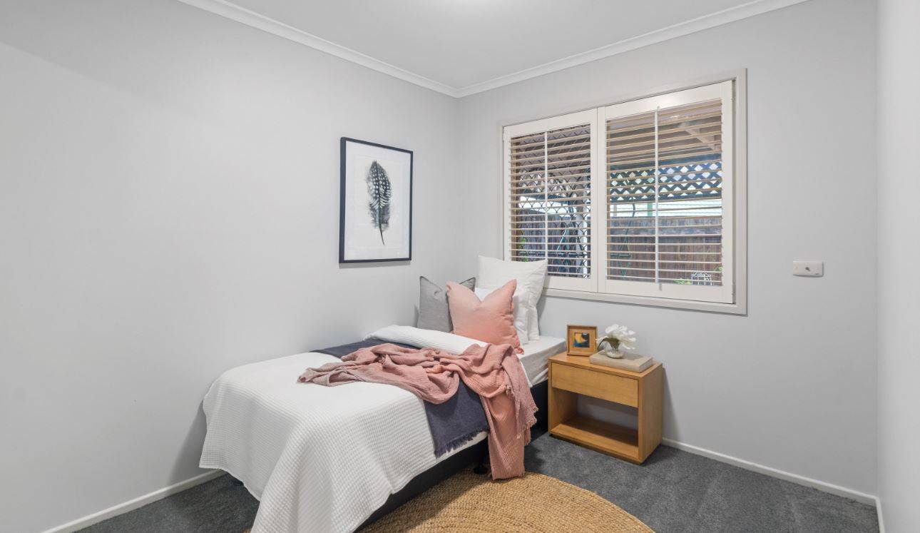 All three bedrooms have carpeted flooring and built-in robes. The bathroom features a separate toilet, and a second toilet is off the internal laundry. There is excellent storage inside, and the property has parking for two cars, including a single lock-up garage.