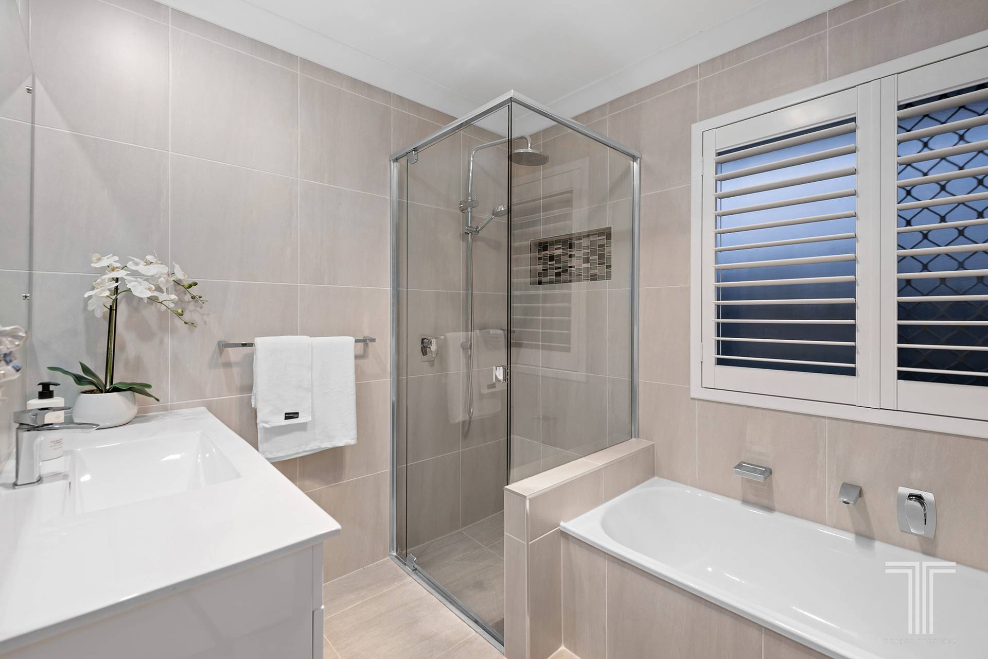 Four bedrooms and two bathrooms finalise the floor plan. The master suite will delight with its walk-in robe and modern ensuite with floor-to-ceiling tiles and a rainfall shower. A gorgeous designer bathroom services the other bedrooms, which include built-in robes.