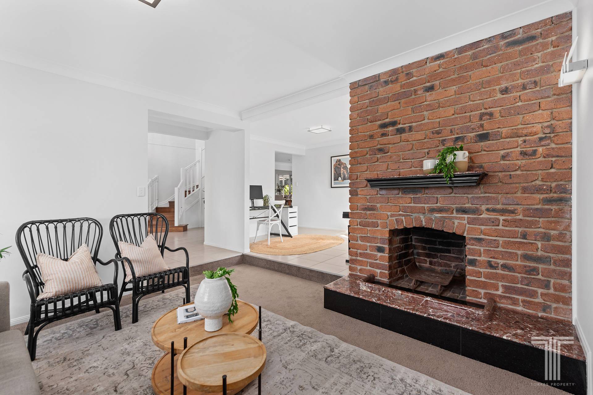 The ground floor comprises a cosy lounge room with a brick fireplace, a separate dining area, family room and an open plan meals space that connects seamlessly with the modern kitchen. Designed for the resident cook, the kitchen has been superbly appointed with wraparound benchtops and a breakfast bar for casual dining.