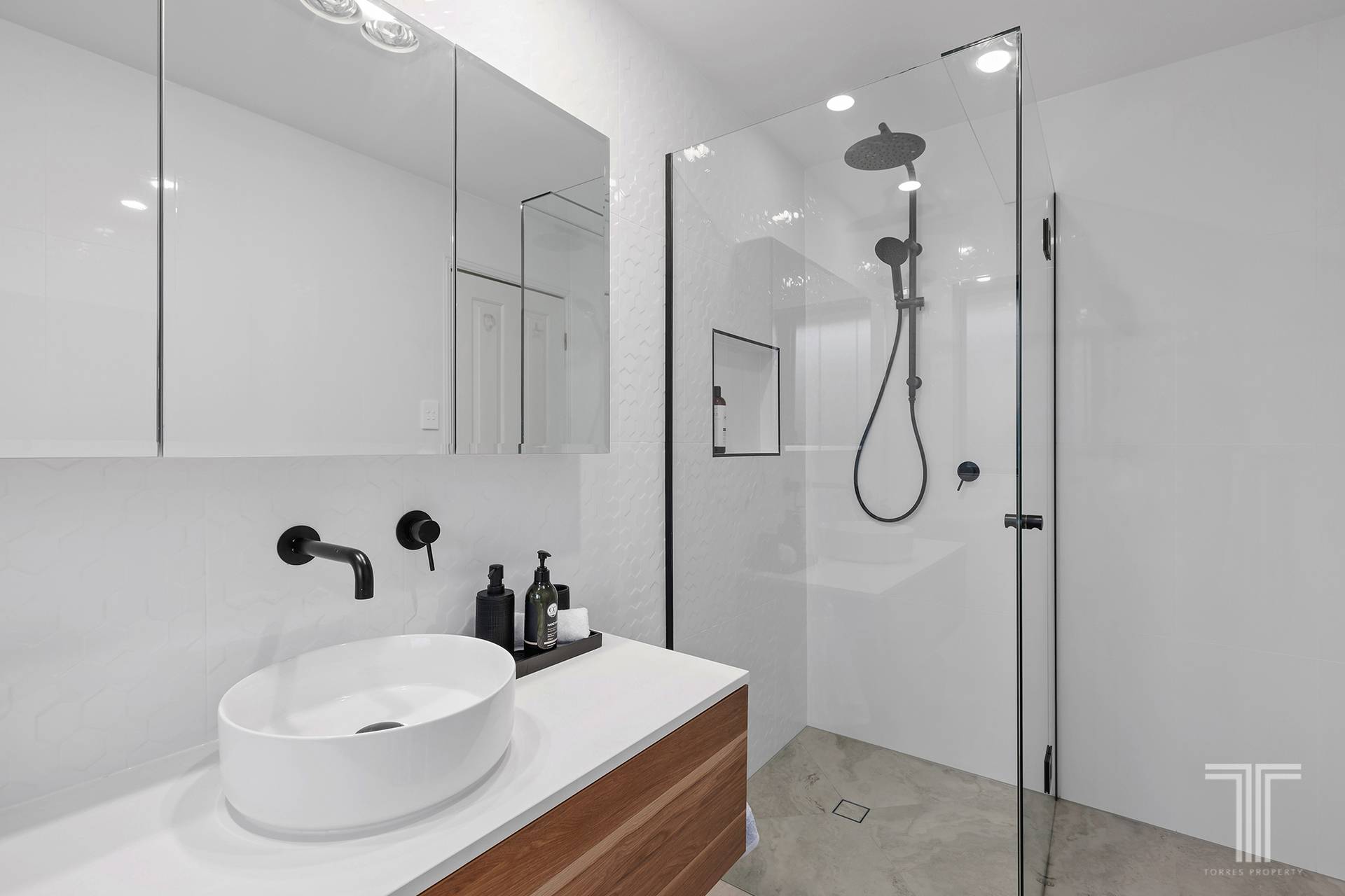 The home features four well-sized bedrooms. The master suite provides separation from the other bedrooms and boasts a walk-in robe, ensuite and access to a second lounge, perfect for a parents' retreat. The renovated ensuite and family bathroom unveil stunning designs with floating vanities, matte black fixtures and beautiful floor-to-ceiling tiles. The main bathroom also includes a luxurious freestanding bath, a separate toilet and adjacent laundry.