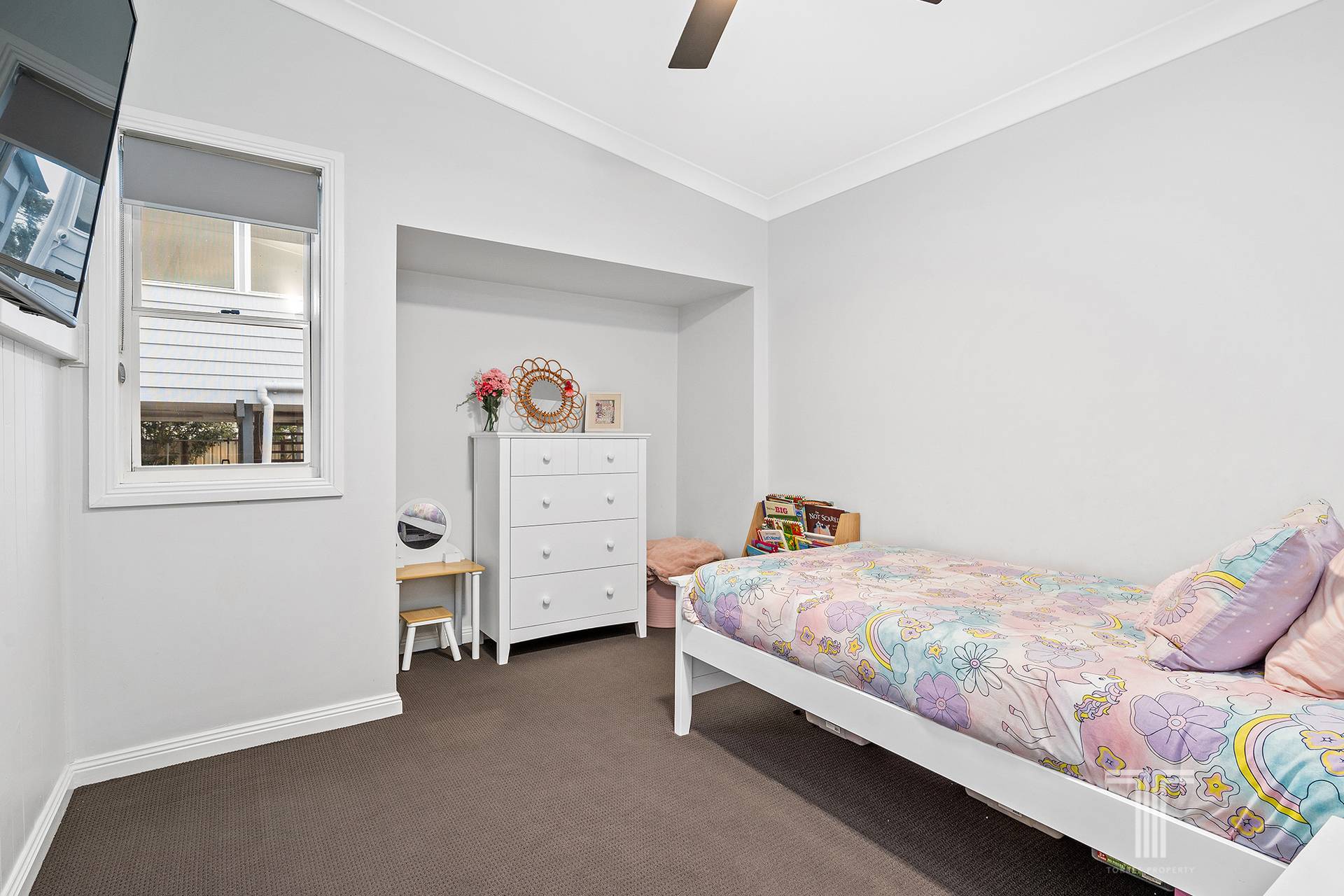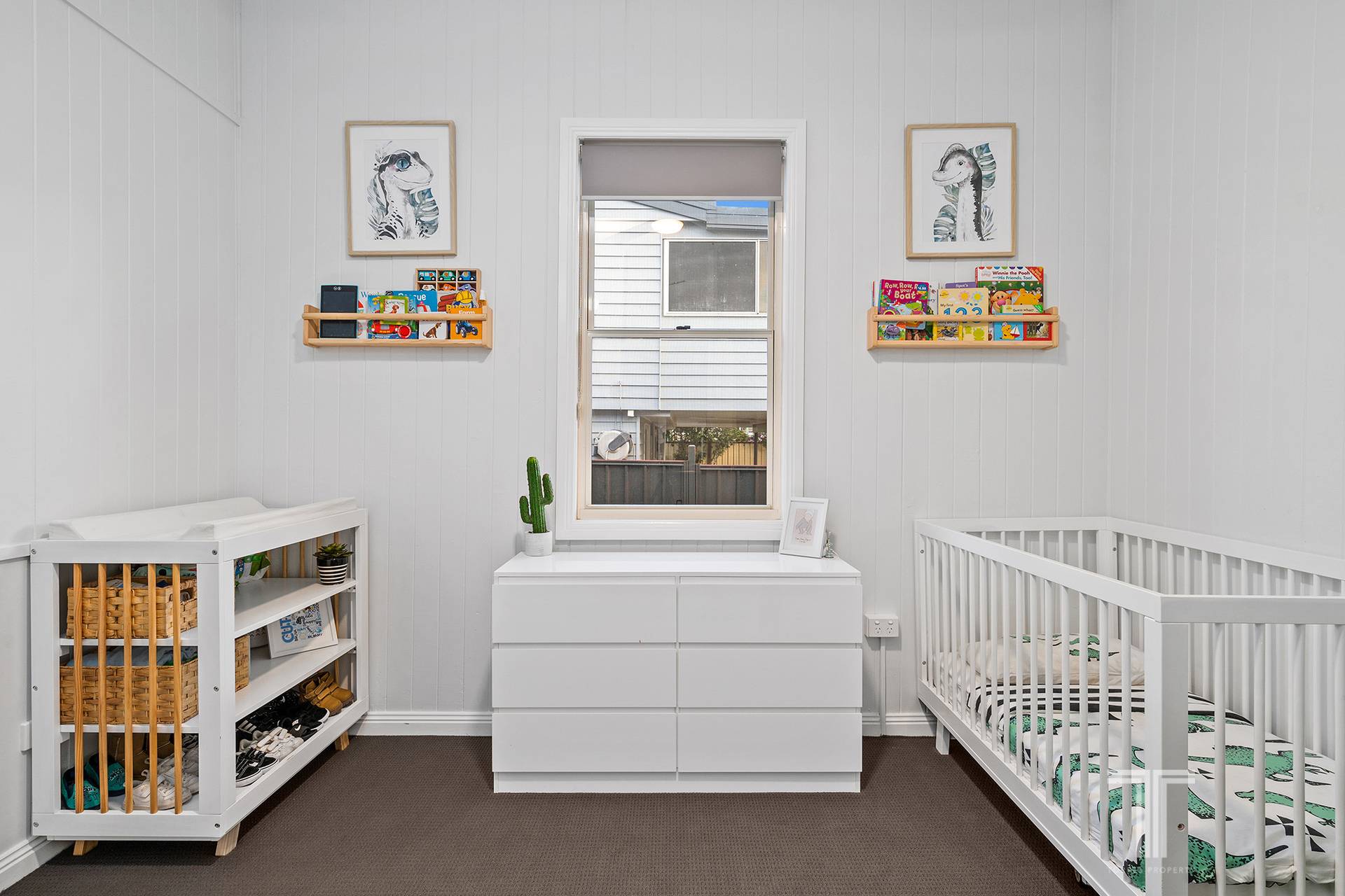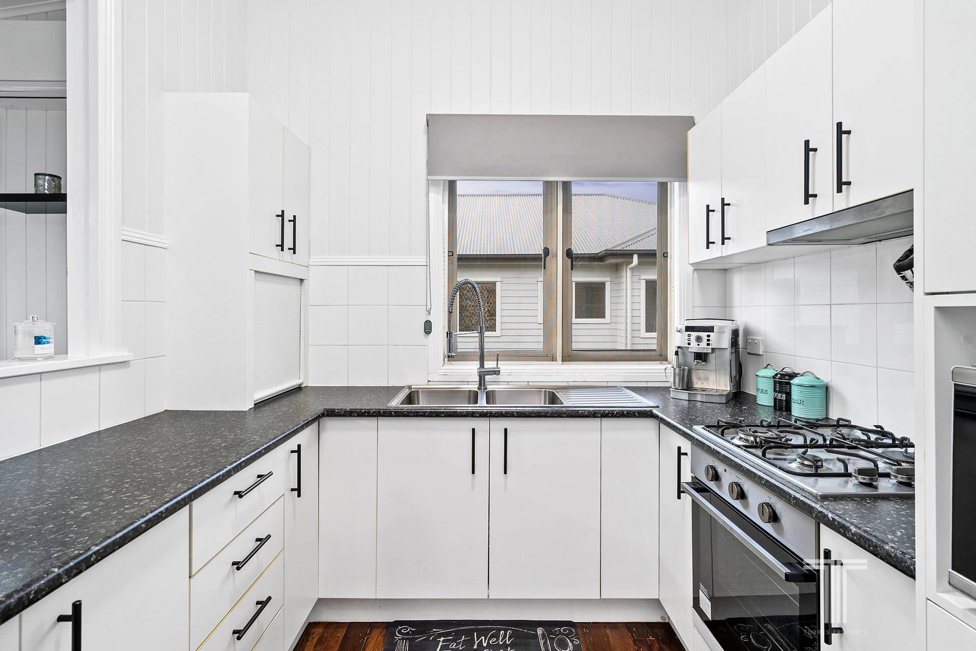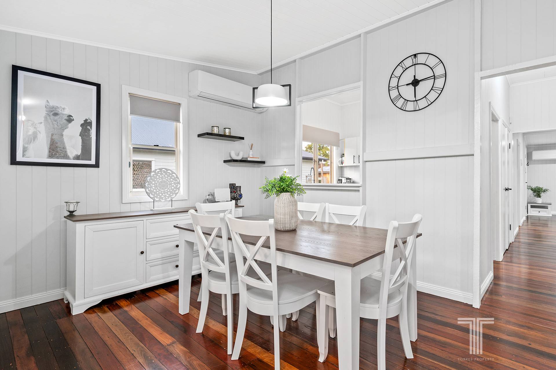 Presenting quintessential character with a contemporary twist, the classic picket fence, timber floors, high ceilings and VJ walls are complemented by the crisp white interiors, matte black ceiling fans and split system air-conditioning.