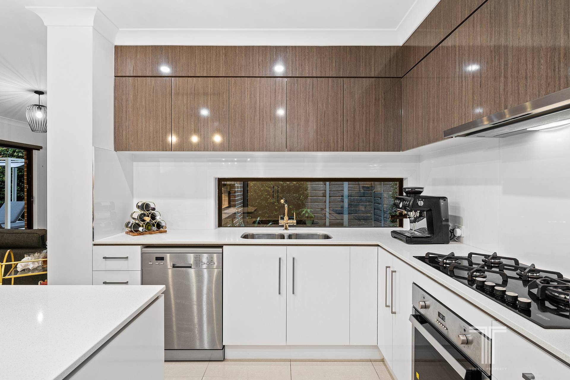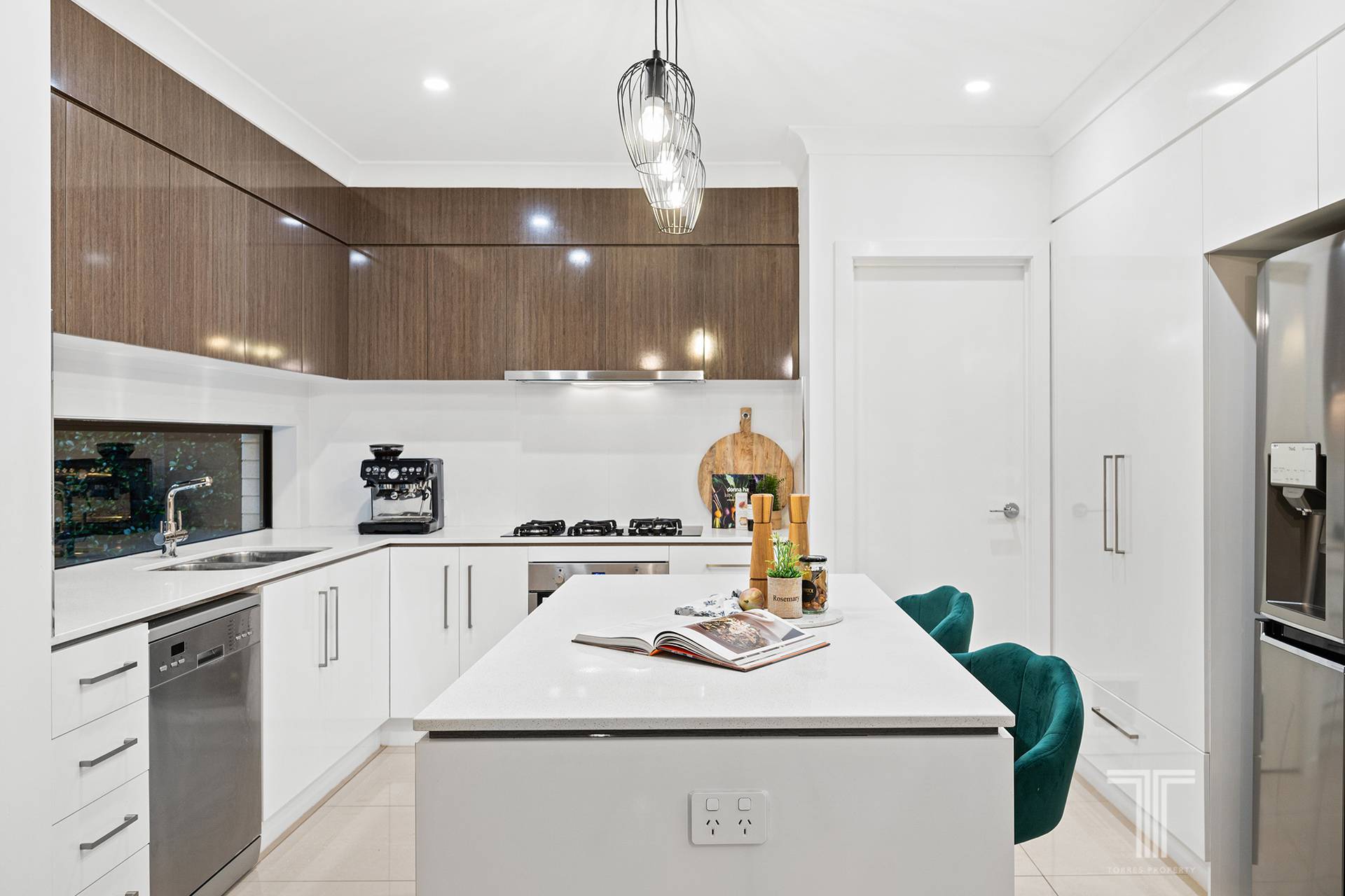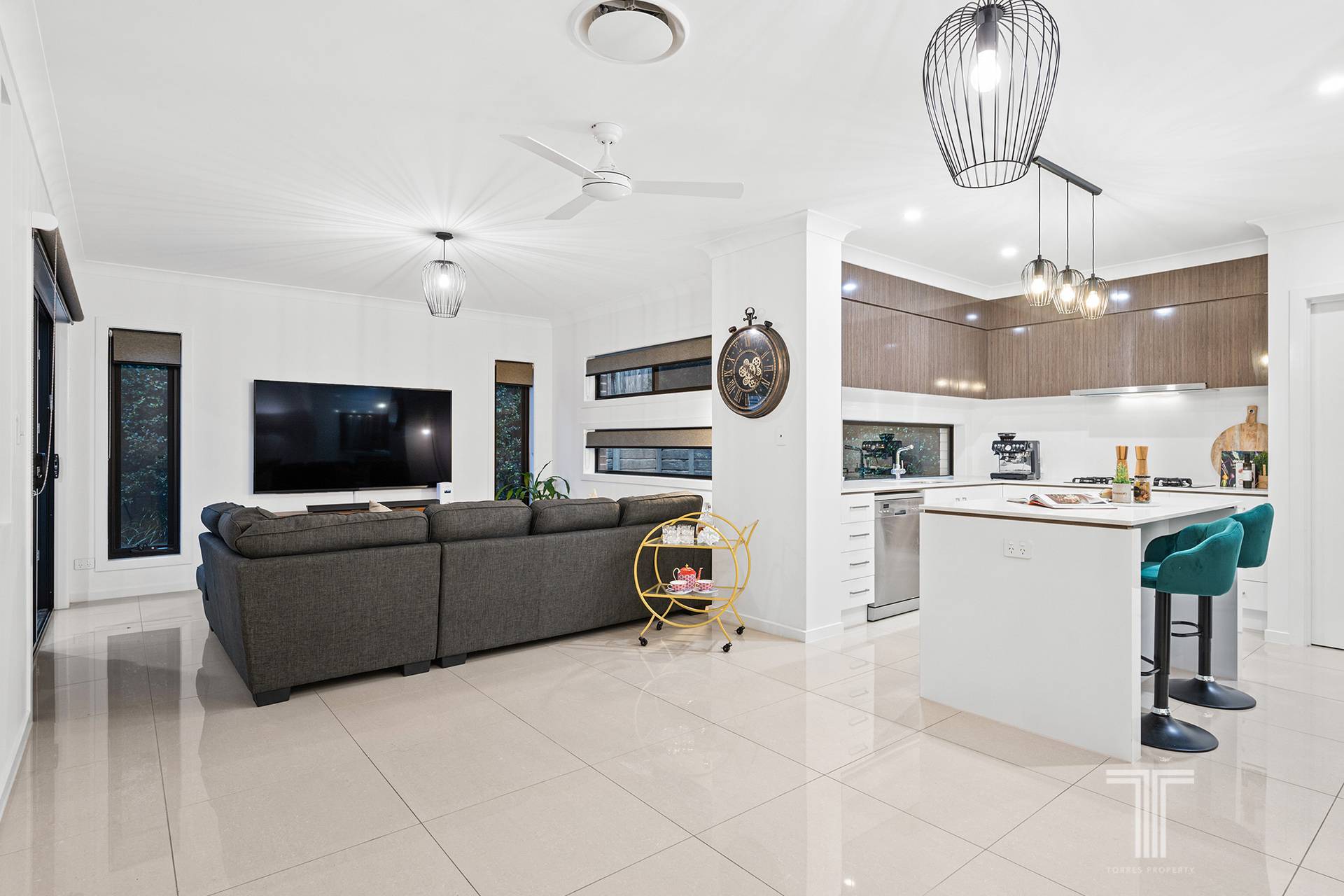 Completed in just 2017, this stylish residence is bursting with high-end upgrades and luxurious finishes from the soaring ceilings to the ducted air-conditioning, the glittering pendant lights, and glossy tiles underfoot. The layout stretches over two levels with an abundance of space for those who love to entertain.