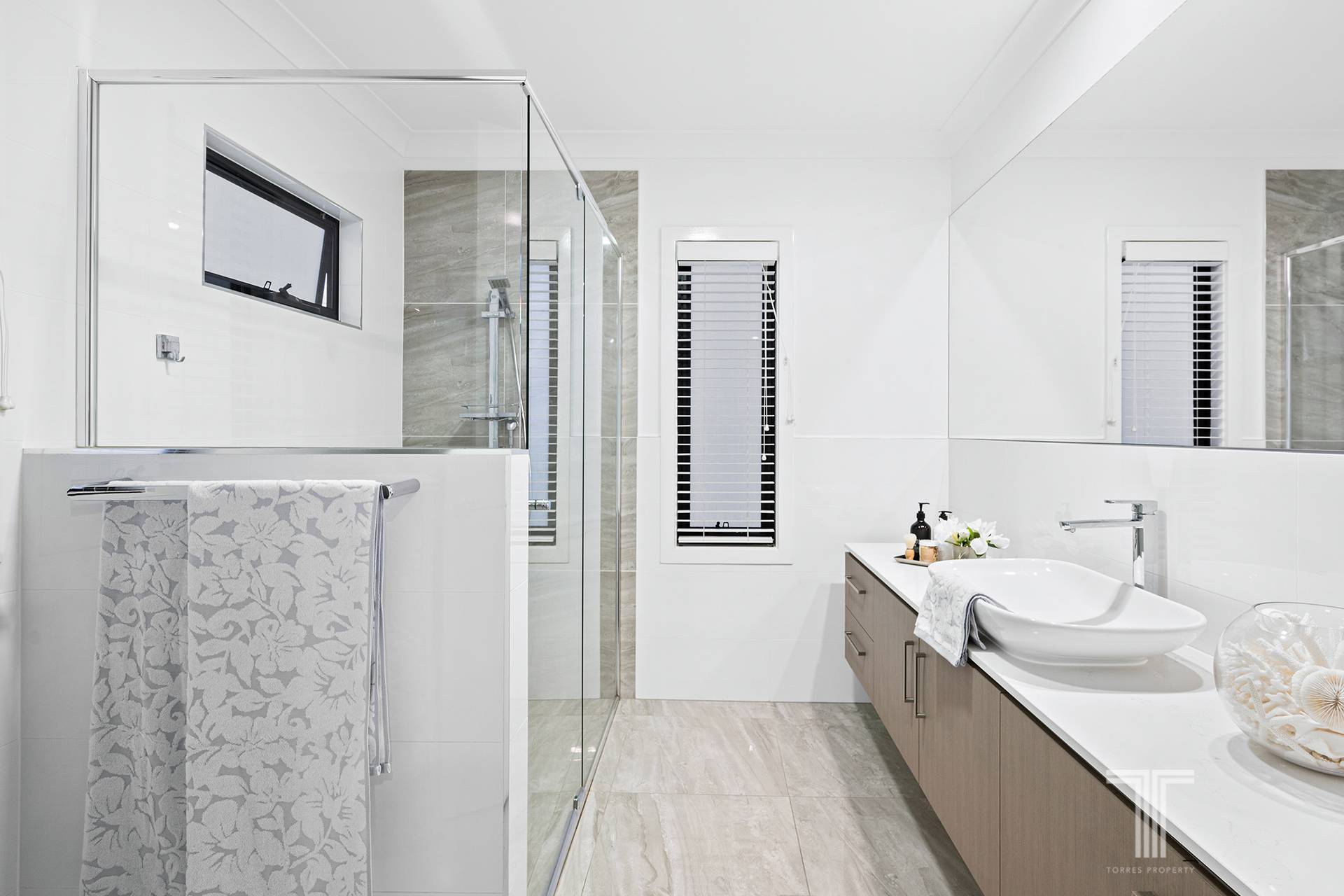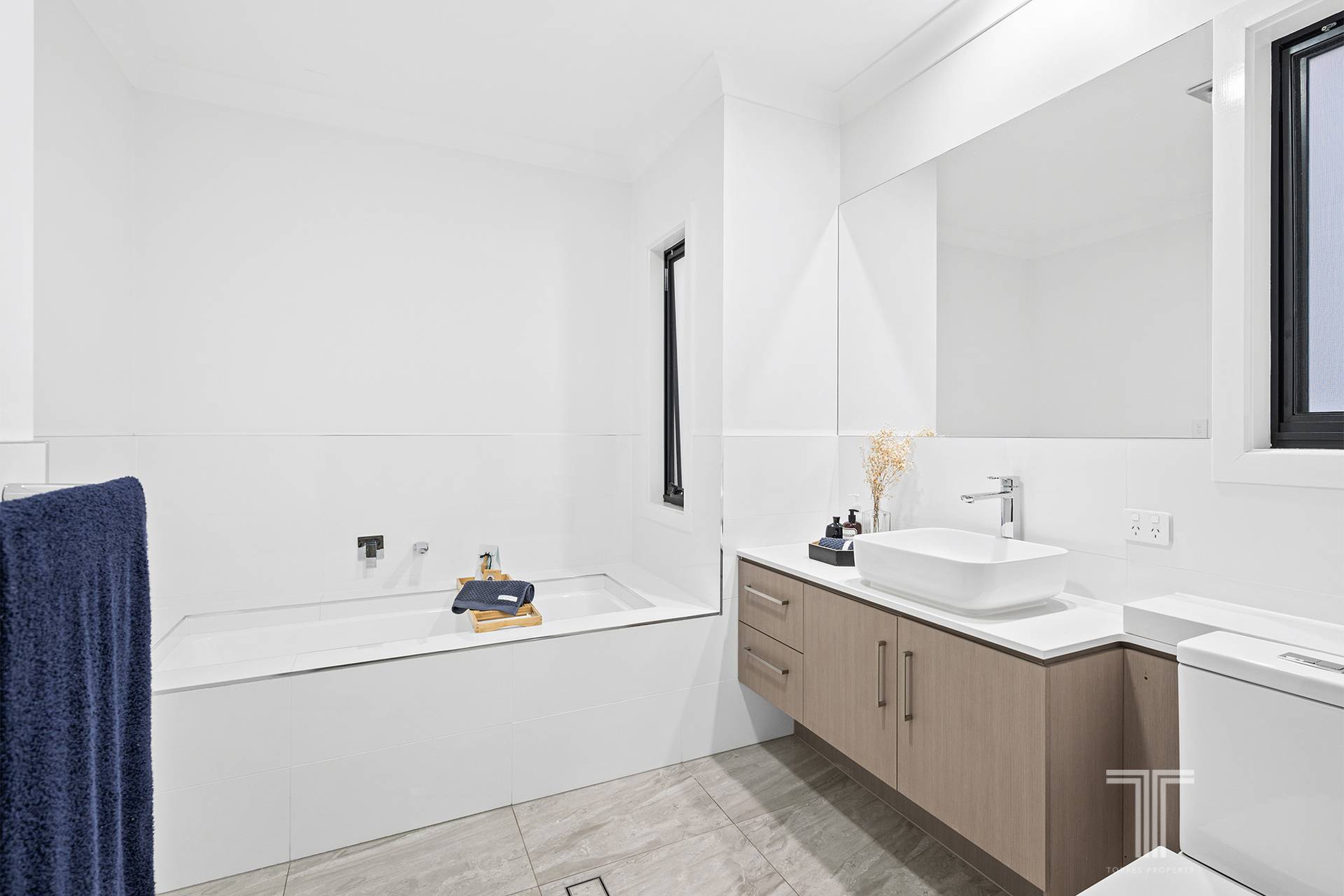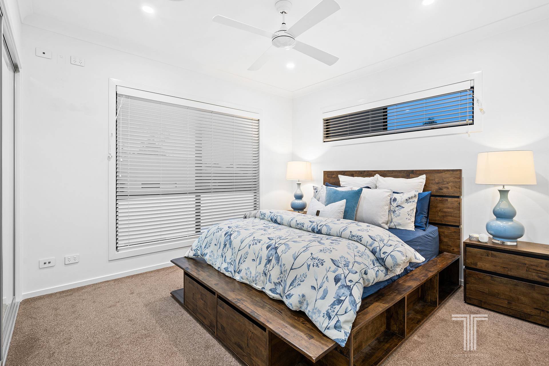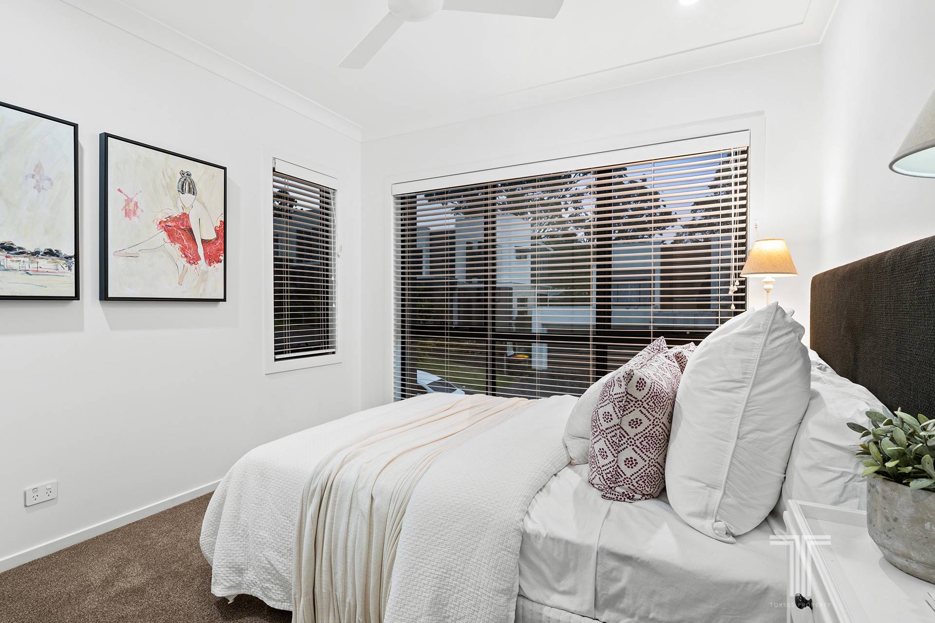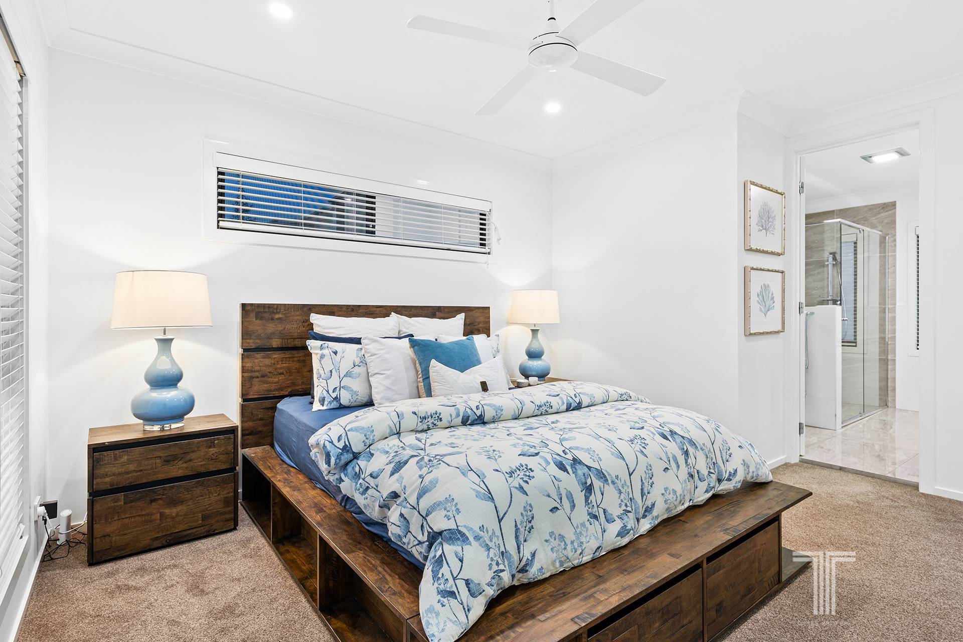 Upstairs, your owner's suite awaits with a luxurious ensuite and dual built-in robes. The guest bedrooms have a single built-in robe and are serviced by a central bathroom with a bath. Extra storage is on offer, and you can also enjoy wonderful views from all the upper-level windows, while the long list of extra features includes ceiling fans, recessed lighting, plush carpet and a neutral colour palette throughout.