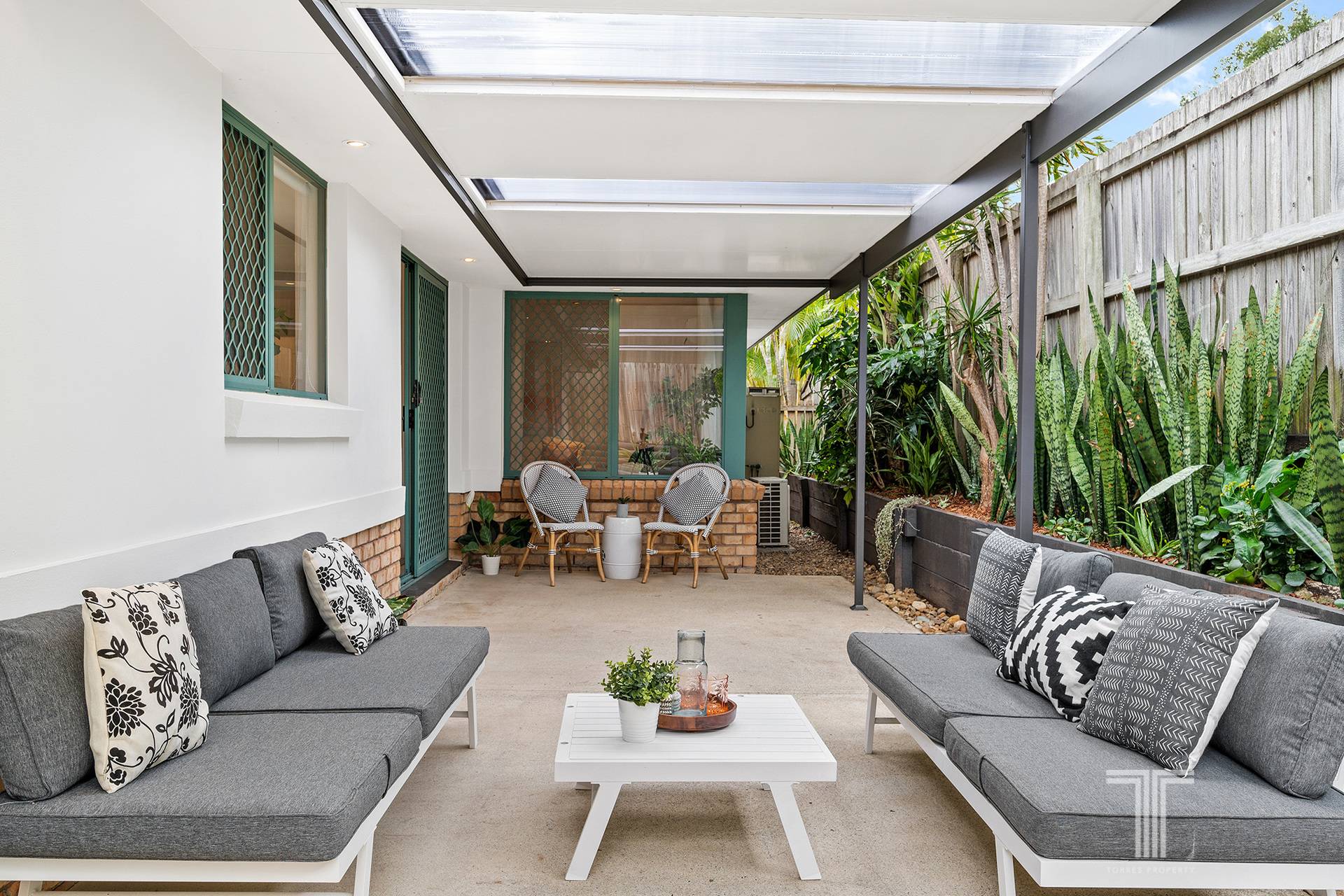 Stepping outside, the house hosts a side patio ideal for drinks, BBQs and kid's playtime. Undercover yet still drawing in the sunlight, you can enjoy this alfresco space all year round.