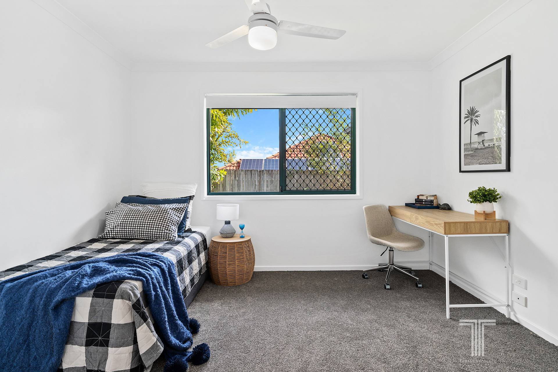 - Ceiling fans and security screens throughout